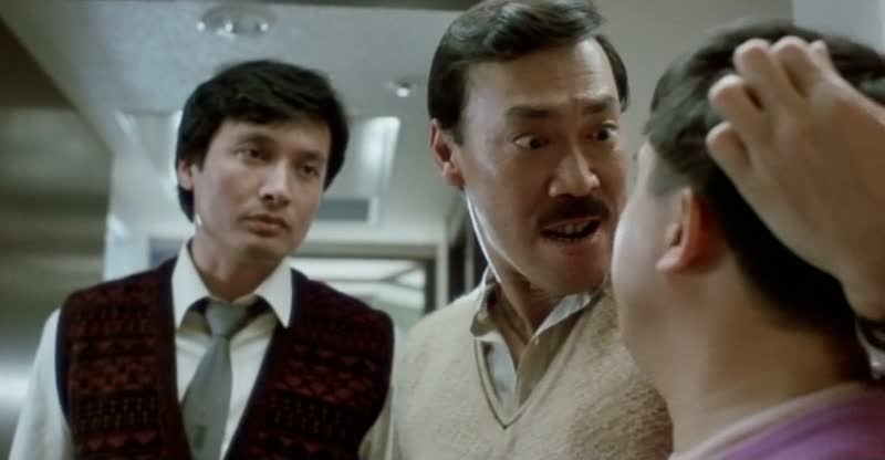 Ils sont de retour ! Après le succès de Winners and Sinners (Le Gagnant) en 1983, Sammo Hung remet en scène ses Lucky Stars dans deux suites réalisées la même année : My Lucky Stars (Le Flic de Hong Kong) et Twinkle Twinkle Lucky Stars (Le Flic de Hong Kong 2). Ici, on prend les mêmes, et on recommence. Ceci dit, le groupe d’amis subit quelques transformations. Les noms changent (ce qui n’est parfois pas plus mal) et John Sham quitte le navire (pour cet opus, il reviendra dans la suite pour un nouveau rôle) et laisse sa place à Eric Tsang (qui réalisera d’ailleurs Lucky Stars Go Places, mauvais épisode dans la saga). Et comme pour Winners and Sinners, le métrage, après nous avoir présenté l’histoire dans ses grandes lignes lors d’une course poursuite au Japon mettant en avant Jackie Chan et Yuen Biao (qui se fait capturer pour ne revenir que dans les cinq dernières minutes), nous présente de façon comique nos cinq personnages principaux. On trouve donc Fast Buck (Sammo Hung) en prison, Herb (Charlie Chin) qui après les montres volent maintenant des bijoux, Rawhide (Stanley Fung) qui fait chanter les dentistes, Sandy (Richard Ng) qui après avoir tenté de devenir invisible veut contrôler l’esprit des gens et Blockhead (Eric Tsang), participant à des jeux de cartes assez spéciaux. Et comme pour Winners and Sinners, le film va avant tout s’axer sur la comédie et autour de ces cinq personnages, laissant Jackie Chan et l’action de côté pendant une bonne heure. Comme souvent, le film est souvent vendu, en France comme à l’étranger, sur le nom de Jackie Chan, ce qui pourra en décevoir plus d’un. Pour autant, My Lucky Stars est une pure comédie Cantonaise qui donne assurément la pêche tant les gags, et surtout, l’alchimie entre les différents membres du groupe fonctionne.