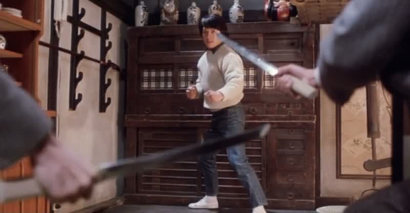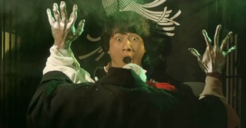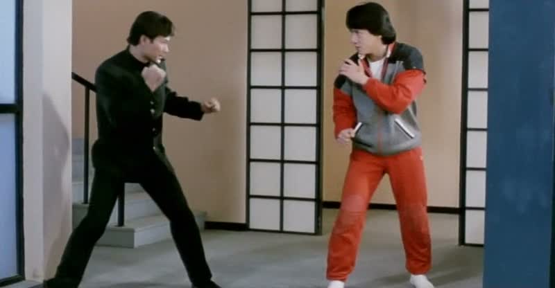 La partie comédie étant bien huilée, il fallait que l’action assure. Et encore une fois, la fine équipe n’a pas fait les choses à moitié. Si le film se calme passé la scène d’ouverture, dès que Jackie Chan revient à l’écran, l’action débarque immédiatement. Le film nous offre par ci par là quelques petites scènes d’action bien foutues mais extrêmement courtes, avant de nous livrer enfin son final, sur une petite quinzaine de minutes, se déroulant dans un parc d’attraction, plus précisément dans une attraction horrifique, permettant alors à Sammo Hung de varier les plaisirs et de laisser place à son imagination pour la première partie de son final, où Jackie Chan déambule dans de longs couloirs et autres petites pièces, où il devra faire attention entre vrais ennemis et subterfuges du parc. L’originalité est de mise, avant le grand final, plus classique dans la forme, où toute la bande se retrouve pour des affrontements collosaux, tant dans les coups portés que dans le casting. Ainsi, Jackie Chan va affronter Dick Wei, Sammo Hung va affronter Lau Kar Wing affuté d’un bandeau noir, tandis que Yuen Biao, réapparaissant (trop) tardivement va affronter le grand Lam Ching Ying dans un combat bien trop court tant il promettait beaucoup, vu les capacités des deux acteurs. Outre la partie martiale réussie, ce final parvient à être également une réussite, puisque les fameux Lucky Stars se mêlent également à l’action, comme dans Winners and Sinners, en prenant des pauses improbables (Richard Ng va nous sortir la technique du serpent…) et drôles. Cette seconde aventure des Lucky Stars parvient donc au final, en reprenant exactement la même recette, a être tout aussi bonne que la première.