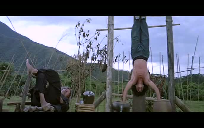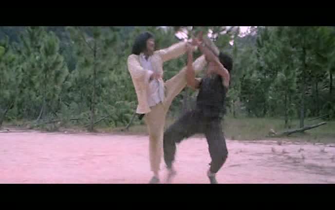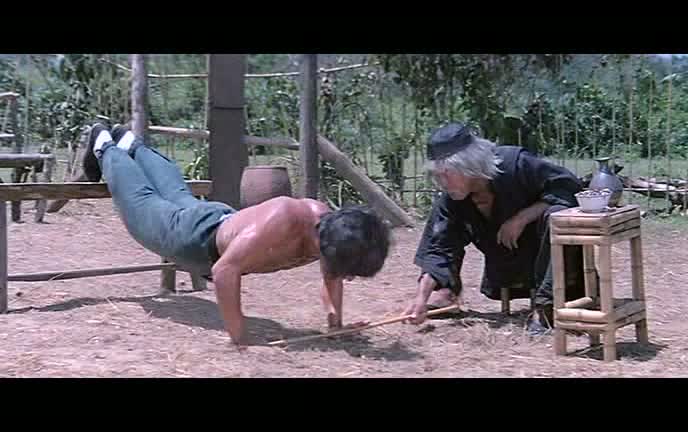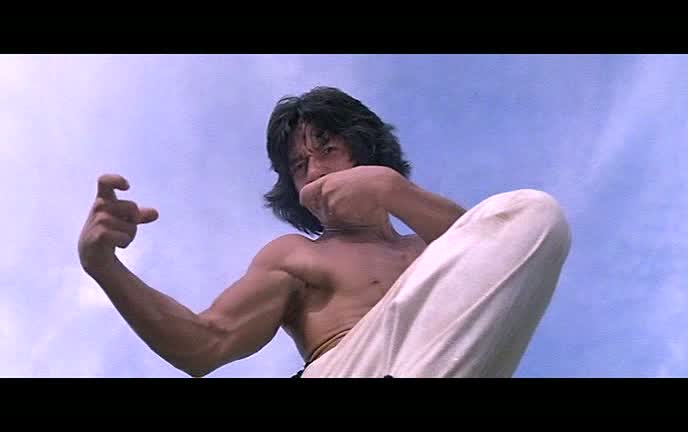 Soyons direct, le cœur du film, outre l’entraînent de Fei-Hung par Soo, ce sera bel et bien les combats, nombreux, donnant au film un rythme très plaisant sur toute la durée. N’oubliant absolument pas l’aspect comédie, les combats, tout comme la relation entre le maître et son élève, sont parsemés de gags, certains too much, d’autres fonctionnant à merveille. L’entraînement de Jackie Chan, ainsi que sa relation avec son Soo sont sans contestes les points forts du métrage. Un entrainement dur comme on aime les voir, et une relation grandissant au fur et à mesure, et surtout prenant un virage à 180 degrés après un premier affrontement entre Fei-Hung et le tueur à gages, affrontement duquel Wong Fei-Hung ressort humilié, et renforçant au final les liens avec son maître, tyrannique mais bien plus respectueux au final. Le film, à l’image de son personnage principal, s’amuse de ce que l’on attend de lui. Ainsi, le maître Soo n’est au top de ses capacités que lorsque du vin est à sa disposition, tandis que son élève redoublera d’inventivité afin de se fatiguer moins à l’entraînement, mais bien entendu, les situations se retournent toujours contre lui. Yuen Woo-Ping, réalisateur et chorégraphe, a bien vu les capacités de Jackie Chan, et les met en avant à chaque instant. C’est bien lui la star du film, autant dans l’aspect action que dans l’aspect comique, si bien que son maître s’en retrouve quelque fois effacé.