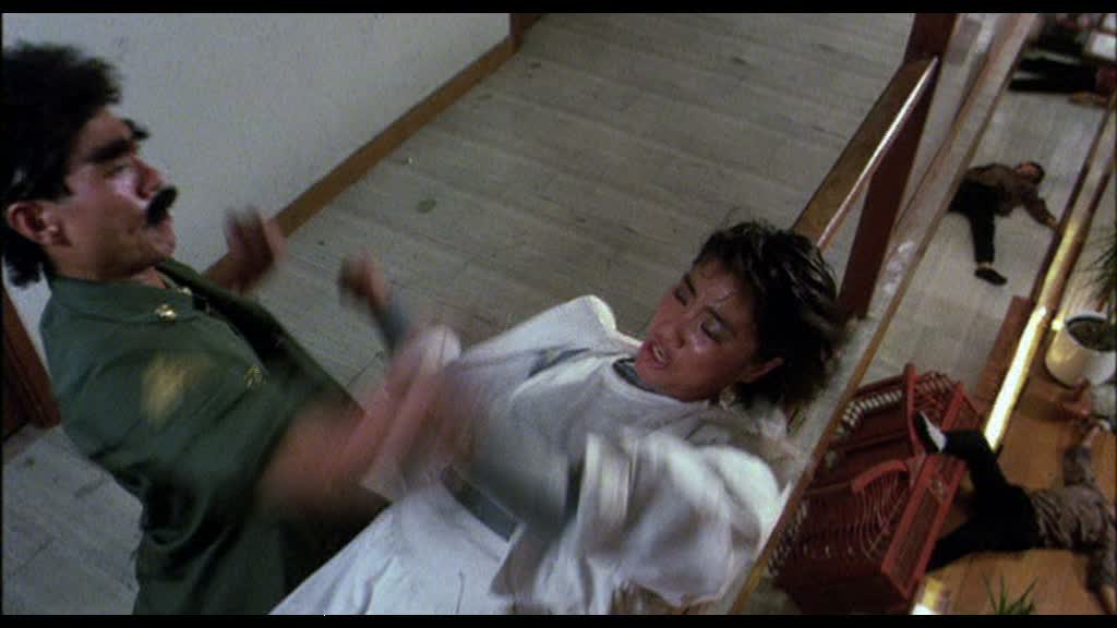 Ici, rares sont les gags qui vont véritablement marcher, à part peut-être un court gag visuel qui sera reprit l’année suivante par John Carpenter dans son hommage au cinéma HK, Les Aventures de Jack Burton. Le constat du film est jusque là très décevant, voir même pénible par moment, surtout que pour tenter de faire monter la tension lors de quelques scènes, Corey Yuen n’hésite pas à utiliser des morceaux de la musique de… Halloween. Et c’est là que, sorti de nulle part, le final débarque, venant rattraper un peu l’erreur de la première heure du métrage, et surtout venant réveiller le spectateur qui n’aura pas du tout adhéré à l’aspect comique du métrage. Et c’est dans cette unique scène que la plupart de l’équipe parviendra à s’exprimer et à se montrer sous leur meilleur jour. Michelle Yeoh est souple comme jamais, Cynthia Rothcock distribue d’impressionnants coups de pieds, Dick Wei et Chung Fat font offices d’ennemis de luxe, les figurants sont très nombreux, et ce final s’étendra sur la durée d’une quinzaine de minutes environ, ne laissant pas le temps au spectateur de souffler, et surtout, permettant de nous en donner enfin pour notre argent. Corey Yuen ne s’est pas moqué de nous, nous offrant des chorégraphies variées et très acrobatiques, et la mise en scène fait son travail, rendant l’ensemble très fluide et toujours compréhensible. Il est dommage que tout cela arrive bien tardivement, car le métrage avait beaucoup de potentiel. Il ne reste au final qu’un film divertissant, que l’on oubliera, à l’exception de son final, très facilement.