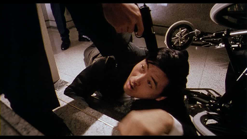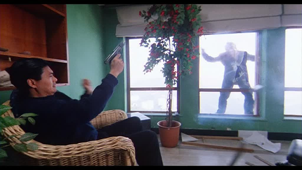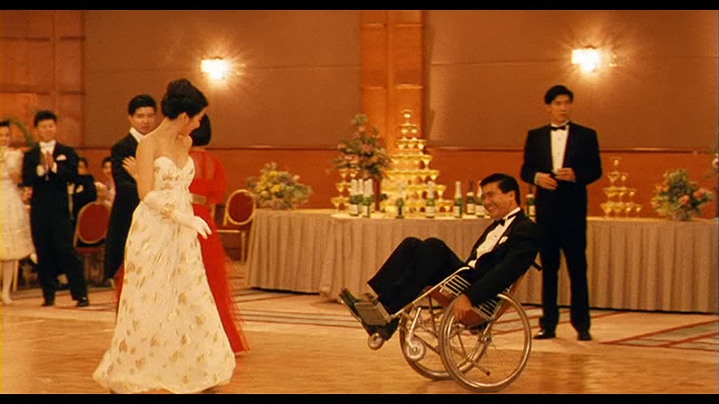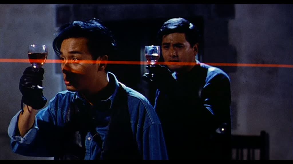 Les gags sont très nombreux, parfois un peu lourds et grotesques, mais parviennent par moment à nous tirer quelques sourires. Chow Yun-Fat, lui, conscient de l’aspect comique du film, en rajoute une couche, en étant quasi totalement en roue libre. S’il reste comme à son habitude classe, comme toujours chez John Woo (mais aussi chez Ringo Lam), il cabotine à fond, allant jusqu’à nous interroger sur la direction d’acteur de John Woo dans le dit métrage. Lorsqu’il simule de présenter une émission de radio pour les enfants devant son père adoptif, il s’en donne à cœur joie et en fait des tonnes. Si l’action se fait un peu plus rare que d’habitude, sans doute la faute au budget et au temps de tournage, elle détonne dans un premier temps, puisque nous retrouvons toutes les figures de styles chères au réalisateur… jusqu’au final où John Woo se fait plaisir et mixe l’action à la comédie pour nous offrir une scène totalement folle et abstraite, qui ne sera sûrement pas du goût de tout le monde. Pourtant, John Woo nous avait déjà mit sur la voie un peu plus tôt, avec Chow Yun-Fat participant à des scènes d’action en fauteuil roulant, mais le final dépasse alors toutes les « espérances ». Si bien qu’au final, il est assez dur de savoir quoi penser du métrage dans son intégralité. Mixant le style de John Woo avant 1986 (avec la comédie) et après 1986 (pour le polar et l’action), Once A Thief est un mix assez hybride, gentillet surtout, qui a constamment le cul entre deux chaises, d’où une impression de gâchis arrivé en fin de métrage.