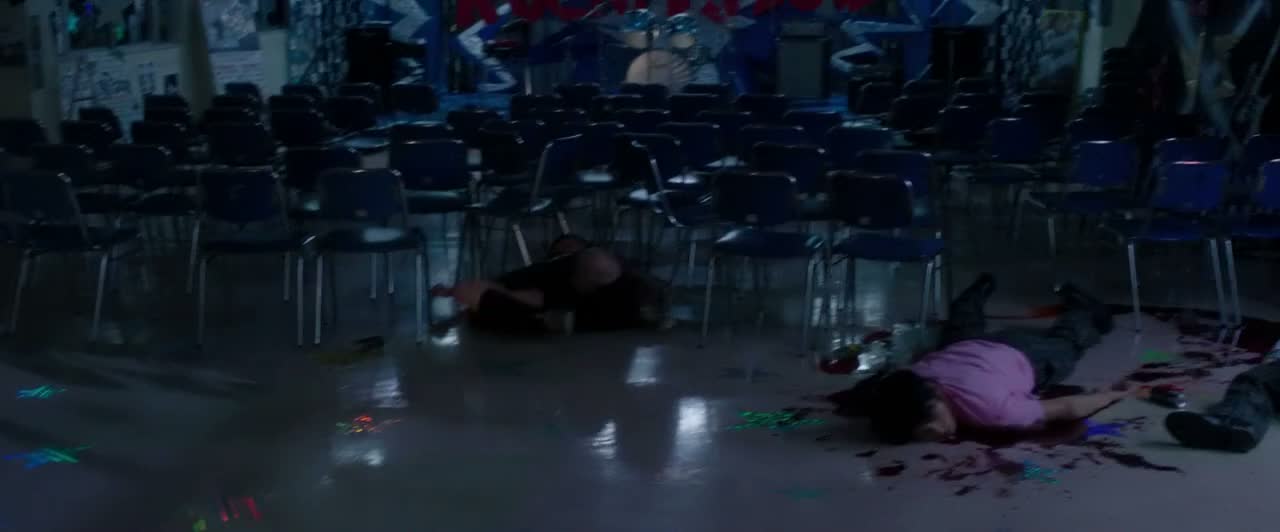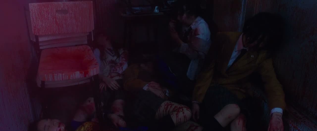 Malgré quelques petites longueurs et quelques effets de styles un peu ratés lors de l’exploration de la psychologie de Hasumi (quelques effets bien kitchs, voulus certes, mais ne fonctionnant pas franchement), le film s’en sort pour le moment très bien. Miike prouve qu’il sait encore se servir d’une caméra (mais ça, on le sait), mais parvient à bien structurer son récit. S’il élimine un peu trop rapidement ses personnages les plus intéressants au final, pour laisser place au carnage final, il n’oublie pas de traiter l’ensemble avec sérieux. A noter que l’on retrouve au casting Sometani Shota (Himizu) et Fukikoshi Mitsuru (Cold Fish, Himizu) dans des seconds rôles plutôt bien développés. Seul regret, la violence, qui était autrefois si caractéristique du cinéma de Miike, est souvent suggérée, ce qui faisait peur pour la suite. Heureusement, il n’en est rien, car dans ses 40 dernières minutes, c’est un vrai déluge. Hasumi pète un câble, et décide de décimer, les uns après les autres, tout le monde dans l’école, à coups de fusil de chasse. Miike ne joue pas sur la tension, ou très rarement, mais joue plutôt sur le côté grotesque de la situation, avec quelques hallucinations de Hasumi, mais également un splendide morceau de danse en plein carnage, et Itô Hideaki s’en donne à cœur joie dans son rôle. Sa performance est assez énorme, du début à la fin, et le voir, autant dans les moments calmes qu’en roue libre, fait vraiment plaisir. Bien entendu, Lesson of the Evil n’est pas exempt de défauts, on pourra comme d’habitude reprocher à Miike quelques longueurs, ou quelques moments un peu trop « barrés » dans un film se voulant totalement sérieux, mais après beaucoup de films gentillets ou carrément à vomir (Ninja Kids et Yatterman), ça fait franchement du bien de le revoir un peu en forme !