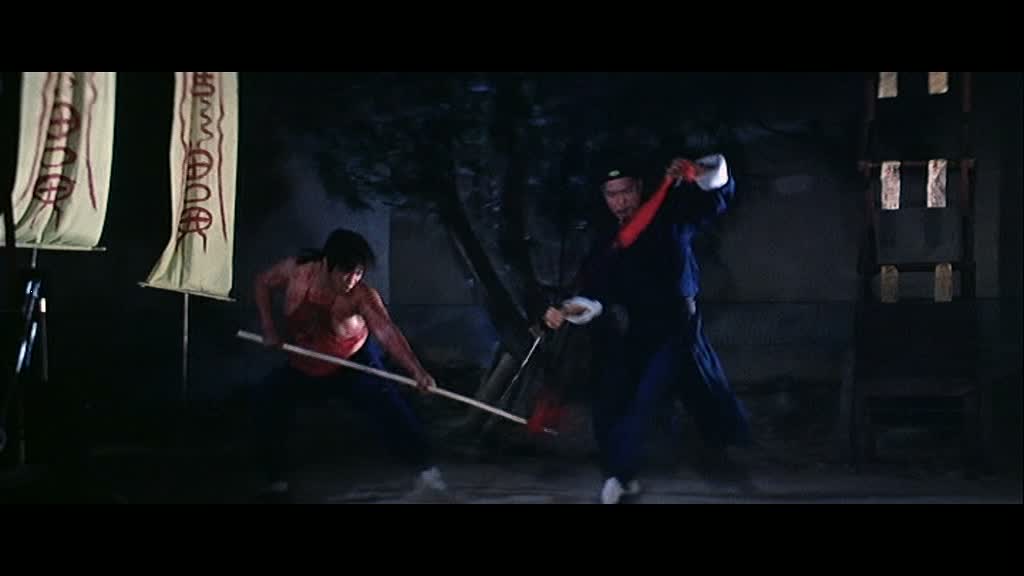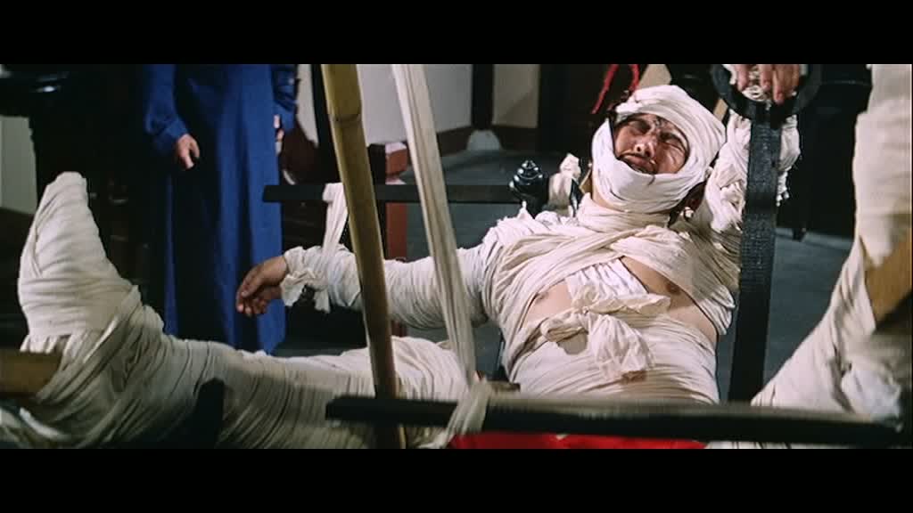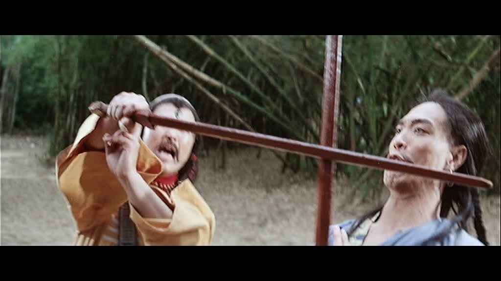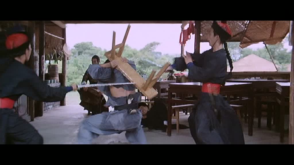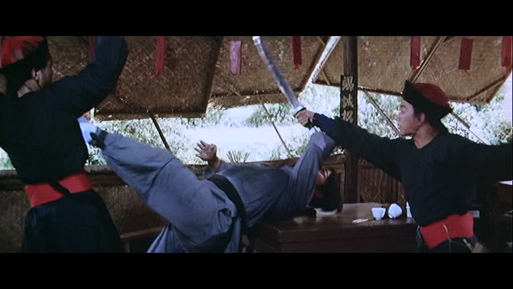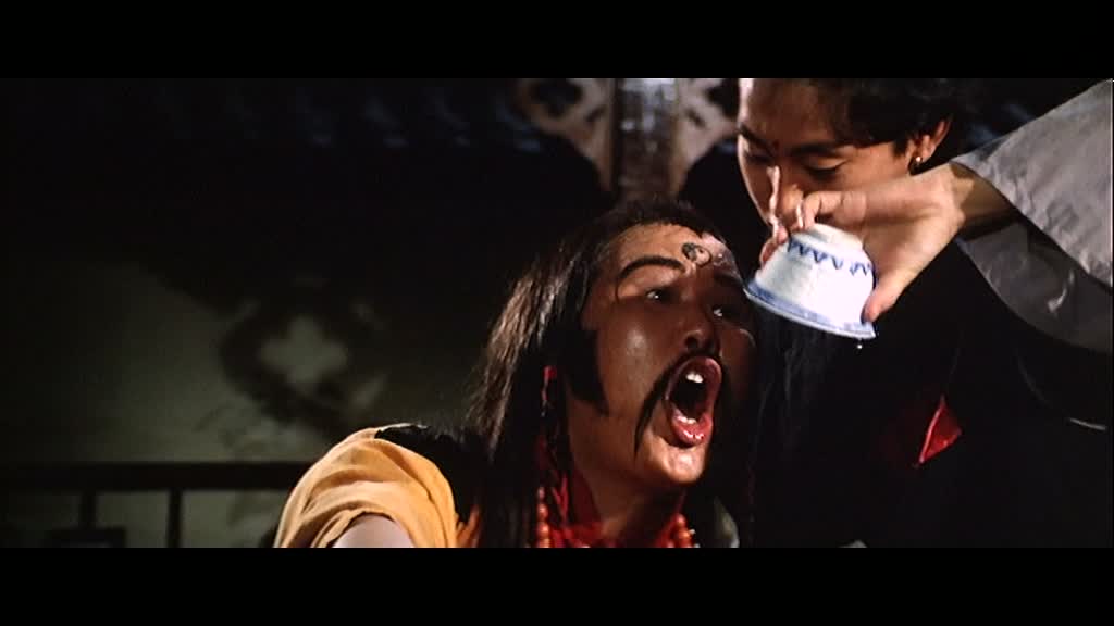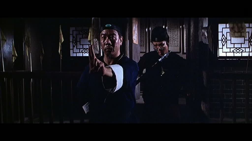 Dans un premier temps, Cheung devra survivre dans un manoir face à un vampire sauteur (ah, déjà avant Mr Vampire). Ces scènes, commençant toujours de manière tendue (Cheung tente de se cacher, ne doit pas faire de bruits), effet accentué par l’utilisation de la bande son de Shining (et ça fonctionne à merveille), virent petit à petit au délire, lorsque Sammo affrontera le vampire à mains nues, nous offrant quelques belles chorégraphies, mais ce n’est rien en comparaison de ce qui nous attend par la suite. Mais passé ces scènes, le rythme s’accélère encore, et le sort de Cheung change, puisque celui ci sera victime d’un complot, son maître faisant croire qu’il a tué sa femme. S’évadant de prison, Cheung devra échapper au moine taôiste toujours après lui, mais également à la police, dont l’inspecteur n’est nul autre que Lam Ching Ying, 5 ans avant son rôle marquant de Sifu dans la saga Mr Vampire (il reprendra également le rôle du maître dans L’Exorciste Chinois 2).