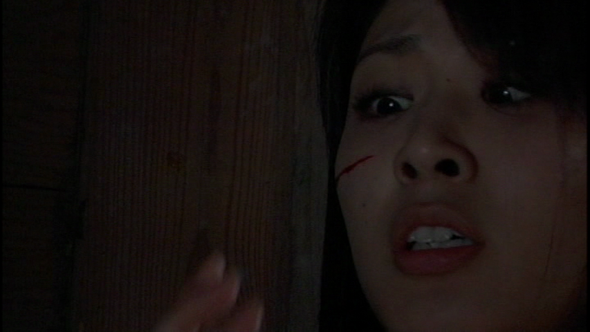 Au Japon, deux modes persistent pour l’amateur de cinéma de genre. Le film de fantôme, et les films où le sang gicle par bidon de 5 litres dés qu’un bras est coupé, voir une main. Films purement d’exploitations, je dois pourtant avouer être fans des deux genres cités. Et parfois, quelques films sortent du lot. Man Hunting, sans être un chef d’œuvre, sort du lot. Mais il ne faut pas se faire d’illusions, pauvre spectateur français, le film n’est sorti qu’au Japon dans une édition non sous titrée. Si vraiment le film t’intéresse, il te faudra payer bonbon sur des sites de ventes en ligne, connaître le Japonais, ou ne te concentrer que sur les images. Dans Man Hunting, on y trouvera une fille en tenue d’écolière, mais bon, comme dans beaucoup de films de genre et même drama japonais. Mais on y trouvera aussi une forêt (le lieu principal de l’action), une cabane (bah en fait, le second lieu de l’action, perdue au milieu de la forêt), un tueur au visage caché tout le long du film (qui vraisemblablement ressemble à un vrai tueur qui aurait été en capable, si j’en crois les dires d’Oli, pour ma part, je m’arrêterais à mes connaissances cinématographiques en faisant un rapprochement avec le tueur du premier Evil Dead Trap), et dans ses grandes lignes, c’est à peu prêt tout ce que le film a à nous proposer. En apparence seulement. Mais à défaut d’avoir le concept de l’année, Man Hunting se montre malgré son budget ridicule (et cela se voit parfois, mais n’oublions pas qu’il s’agît ici de V-Cinéma) très généreux et rythmé. Et on n’en attendait finalement pas plus. Car passé une petite introduction en ville de quelques minutes (pas plus de cinq) qui nous présentent les trois personnages importants de l’intrigue, notre jeune femme se réveille, par terre, dans la cabane. La porte est fermée, elle ne peut pas sortir par la fenêtre, elle ne sait pas ce qu’elle fait là, comment elle y est arrivée. Le grain de l’image, qui nous rappelle que le budget n’était pas énorme, ne dérange pas, bien qu’il soit parfois très voyant (dés que les scènes sont un peu sombres en intérieur par exemple).