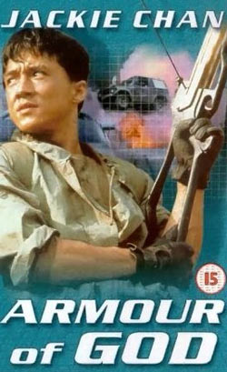 Ce premier Armour of God, renommé en France Mister Dynamite (titre français trouvant sa signification lors du final), est une autre des réalisations cultes et clés de la carrière de Jackie Chan, sans pour autant en constituer son meilleur métrage, loin de là, souffrant de quelques défauts plutôt dommageables que la suite corrigera. On pourra d’ailleurs noter que lorsque Miramax sortira le métrage aux Etats Unis, la suite, Opération Condor, sera déjà sorti là bas depuis quelques temps, si bien que cet opus sera renommé là bas Opération Condor 2… Il ne faut pas chercher la logique dans la boite de Bob et Harvey Weinstein, bien connu pour remonter les films dans le dos des réalisateurs. Bref, revenons à Mister Dynamite. Après avoir été dans la police maritime et dans la police tout court dans sa précédente réalisation, Jackie Chan joue ici le rôle d’un aventurier. Inspiré d’Indiana Jones comme beaucoup de métrages à l’époque (la même année, le grand Nam Nai Choi livra par exemple The Seventh Curse, avec Dick Wei, Chow Yun Fat et Maggie Cheung, mais là, on ne parle pas de la même catégorie de films), Mister Dynamite commence au quart de tour, avec notre jeune Jackie se retrouvant dans un village indigène pour voler forcément un objet sacré, qui est un des cinq éléments de l’armure de Dieu. Dés le début, il nous gratifie de décors exotiques, de quelques cascades de folies (dont la fameuse cascade lui ayant pratiquement coûté la vie, visible lors du bêtisier de fin). Puis Jackie se calme pour nous présenter son histoire, et délaisse pendant quelques temps l’aventure pour retourner à la comédie, comme souvent.