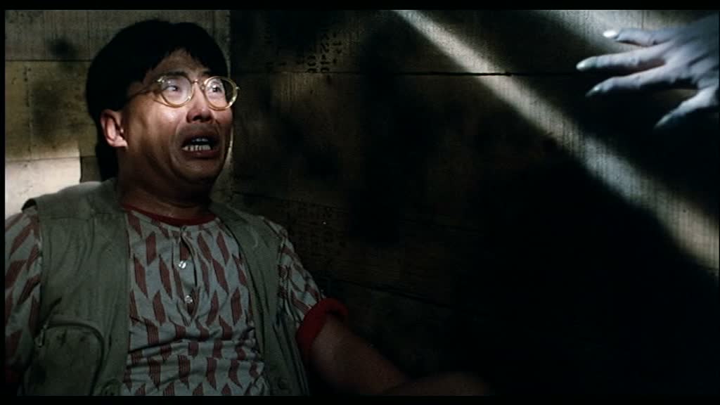 De l’autre côté donc, nous trouvons Lam Ching-Ying dans un rôle bien différent, bien qu’il va encore une fois reprendre la chasse au vampire. Il semble un peu effacé et peu concerné, ce qui se comprend au vu du peu de qualités du métrage. Une bonne partie de l’intrigue va se passe dans le laboratoire des archéologues, où Yuen Biao, peu concerné également, va se retrouver pour affronter les vampires sauteurs. On peut s’attendre et espérer de l’horreur, mais également de l’action, sauf qu’encore une fois, le film est à côté de la plaque, et va nous livrer sa seule bonne idée, qui malheureusement, si elle est amusante 15 secondes, va s’éterniser sur pratiquement 10 minutes du film. Nous trouvons donc une scène au ralenti dans le métrage, mais non pas avec des images au ralentis non, juste des acteurs jouant et bougeant au ralenti. Oui, le procédé est amusant quand on le découvre, mais sur 10 minutes, le temps parait long, très long, et ne fait que se rajouter à la liste des très nombreux défauts du métrage. Avec son mix entre ET et son huit clos dans une vieille cave, il n’y a rien de bien palpitant à se mettre sous la dent, bien que le final, se déroulant dans les rues et faisant se rejoindre les deux intrigues réveille un peu le spectateur étant arrivé là par passion pour le genre et pour le premier opus. Mais encore une fois, le final déçoit, malgré un essai de retour aux sources (Lam Ching-Ying et Yuen Biao faisant équipe pour tuer les vampires), et ce jusqu’à une dernière image prévisible, faisant de Mr Vampire 2 le pire opus de la saga. Seul bon point ? La mise en chantier du troisième opus, probablement le meilleur, en forme de gros retour aux sources, ENFIN !