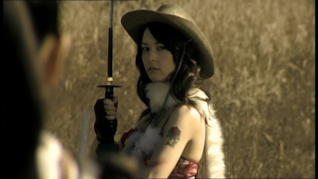 C’est tout con, mais l’ajout de ce petit background aide le film à avoir plus d’épaisseur. L’action, très présente, et très jeu vidéo, nous offre quelques chorégraphies sympathiques, quelques bons coups, quelques poses qui ont la classe, et même quelques transformations façon Super Saiyan ! A côté de ça bien entendu, il faut toujours garder à l’esprit que Onechanbara n’est pas un film de cinéma, mais un film vidéo, et cela s’en ressent beaucoup. Les décors sont souvent vides, les acteurs, s’ils sont corrects, n’ont rien d’exceptionnels, l’histoire, tout conne, se limite à une série de niveaux avant le boss final. Pire, dès que les effets spéciaux sont numériques, ce n’est souvent pas très beau, il faut bien l’avouer, entre les gerbes de sang numériques, dont certaines éclaboussures sur l’écran, ou bien les impacts de balles, ce n’est pas très glorieux. Outre son budget sans aucun doute très limité (et qui le semble encore plus dans la suite), on pourra sans doute parler d’un manque de temps certain dans la finalisation de l’ensemble, mais comme à son habitude, Fukuda Yôhei livre un produit débordant d’idées en tout genre, et d’énergie, ce qui n’était pas gagné dès le départ. Et rien que pour ça et toutes les raisons énoncées plus haut, Onechanbara, premier du nom, a tout notre capital sympathie.