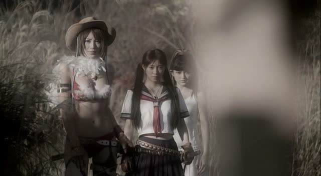 Mais il n’y a pas que la mise en scène et ces différents effets qui sont à la ramasse. Le scénario, s’étendant sur 1h30, peine à trouver son rythme, et à en donner aux différentes scènes. Si bien que l’ensemble devient rapidement pénible. Pour ne rien arranger, il faudra bien avouer que les différents acteurs, et surtout actrices, ont beaucoup de mal à nous faire oublier celles du premier film. Ce n’est pas vraiment un souci de jeu, le premier n’étant pas un modèle à ce niveau, mais probablement un problème de présence à l’écran, de charisme. Avec son histoire beaucoup moins intéressante, sa réalisation abusant d’effets ratés, ses acteurs qui ne laissent rien de marquant à l’image, ce second Onechanbara n’a pas grand chose jouant en sa faveur, surtout si l’on ajoute des effets spéciaux souvent ratés, un rythme pas toujours très soutenu. C’est dommage après un premier film sympathique, la licence avait de beaux jours devant elle, et si les chorégraphies sont un poil décevantes, certains moments sont plutôt bien trouvés également.