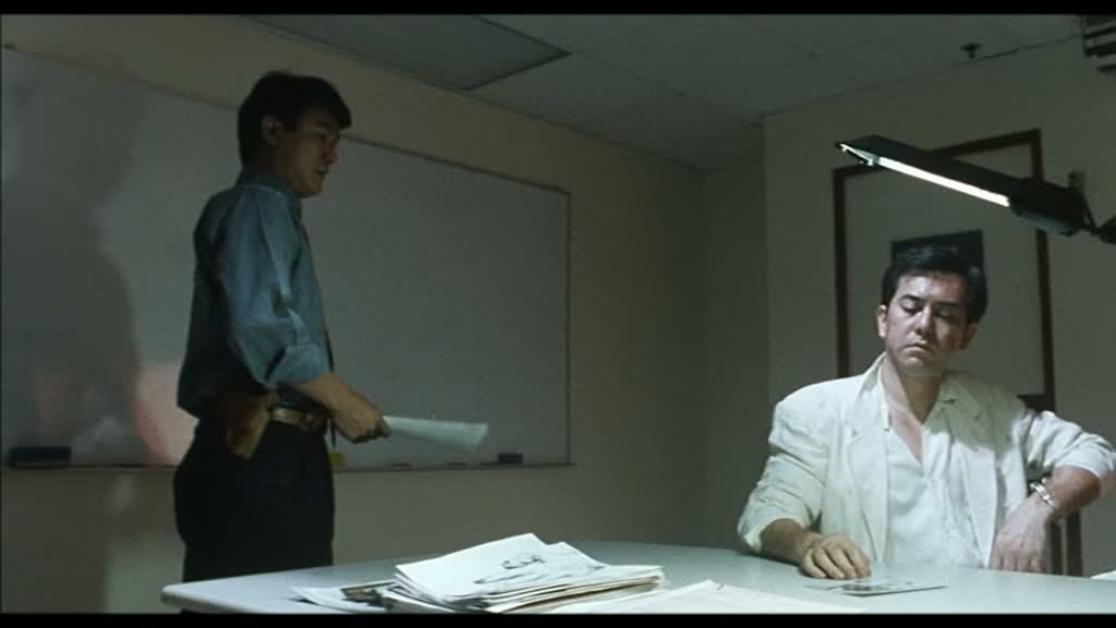 C’est peut être d’ailleurs son seul vrai grand défaut. Chaque élément a déjà pu être vu ailleurs. À ce niveau, OCTB manque quelque peu de nouveauté et d’originalité, il utilise une formule qui a fait ses preuves par le passé, et qui fonctionne toujours. Heureusement, Kirk Wong est un bon metteur en scène, et ne se prive pas pour nous le montrer lors de très nombreuses séquences, prenantes comme il faut. Le scénario semble très réaliste (normal, vu qu’il fut écrit par un ancien policier), et sera également une des forces du métrage. Malgré des éléments déjà vu, l’ensemble s’emboite parfaitement et reste réaliste et cohérent, de la première à la dernière image. Pas de fusillades ultra stylées façon John Woo ici, pas de séquences d’action surréalistes au possible, pas d’éléments gros comme une maison qui viennent s’emboiter un peu trop facilement. Non, OCTB utilise certes les codes bien connus du genre, comme le supérieur qui est toujours sur le dos de l’inspecte, les affaires internes qui s’en mêlent, les tentatives d’évasion, mais le fait toujours de manière cohérente et bien menée. Kirk Wong parvient à poser avec ses personnages simples une vraie ambiance dans son métrage, une ambiance un peu désespérée, et surtout pleine de tension, comme on peut le voir dés la scène d’ouverture où l’inspecteur Lee s’engage avec ses hommes dans un raid sans l’accord de ses supérieurs. Cette tension permanente ne lâchera que rarement le métrage.