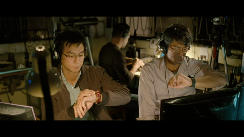Cependant, Overheard reste juste un très bon film, un produit parfaitement emballé et mis en oeuvre par des artisans fortement doués, mais qui montre quelques défauts comme une direction d’acteur maladroite où Lau Ching Wan reste égal à lui-même, c’est à dire parfait (magnifique scène avec Zhang Jin Chu où ils sont séparés par une vitre), charismatique,même lorsqu’il ne fait que de marcher, mais où Daniel Wu reste encore sous éxploité, et Louis Koo surjoue pas mal, certainement dù à l’ecriture de son personnage, sans compter sur un Alex Fong transparent dans un rôle anecdotique et une Zhang Jin Chu toujours aussi ravissante (à noter la présence remarquée de Waise Lee et Michael Wong!); un scénario peu original, et un manque cruel de profondeur concernant les personnages principaux, ce qui empêche une implication totale vis à vis de leur amitié, mais aussi quelques effets de mise en scène totalement inutiles et gratuits (le reflet de Louis Koo à la fenêtre avec le ciel qui s’assombrit…).