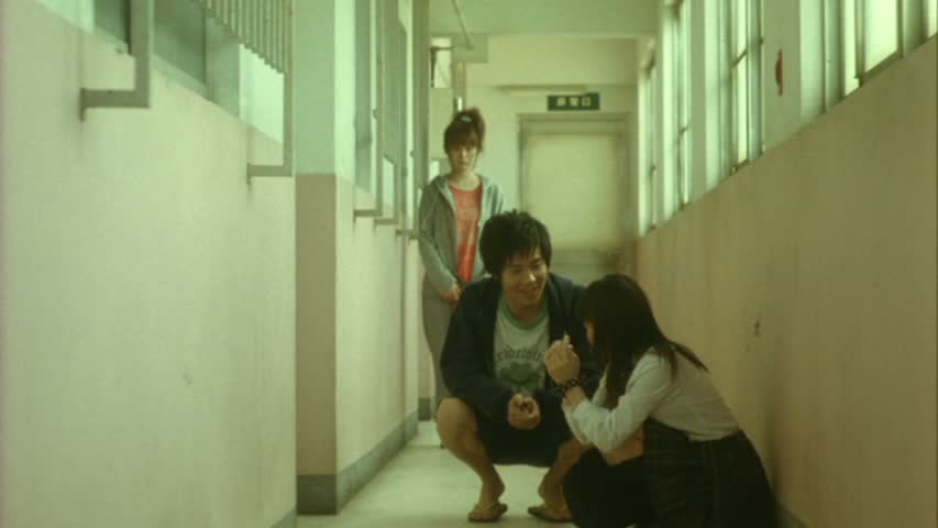 Vendu comme étant l’un des meilleurs films japonais de 2010 selon certaines critiques, aux côtés de Confessions, Villain et Kakera, Parade part d’un point de départ simpliste pouvant rappeler Petits Meurtres entre Amis, pour mieux surprendre et s’en éloigner ensuite. Découpé en quatre parties, qui nous sont présentées par du texte s’affichant à l’écran, le film nous invite à suivre tour à tour pour mieux les connaître les quatre colocataires de ce petit appartement, dans leur quotidien constitué de faux mystères, d’histoires d’amour et des drames de la vie quotidienne, le tout sans vraiment d’intimité entre eux. Le cinquième colocataire surgissant d’on ne sait où (au départ) n’arrivera qu’au bout d’une demi heure du film, et après que l’on ai au préalable fait la connaissance de la plupart des autres personnages, en particulier Naoki. Naoki, jeune étudiant universitaire, qui a aussi un petit boulot, et craque pour la sœur d’un ami. Lève tard, allure de puceau, peu sur de lui, on pénètre dans le film par son intermédiaire, alors qu’il est réveillé par le son des hélicoptères de la police après la découverte d’une jeune femme, assassinée dans un parc non loin de là.