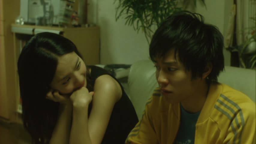 Satoru finira même par devenir en quelque sorte l’ami intime de chacun de ses colocataires, un ami qui arrive sans prévenir et avec qui on sent que l’on peut immédiatement partager des moments de sa vie, raconter son passé. Et parfois un peu sans le vouloir, ou par inadvertance, il pourra finalement aider ses différents personnages à vaincre certaines choses, à aller de l’avant. C’est sur ce point que le film se rapproche le plus de Visitor Q, le trash en moins. Satoru fera parfois certaines actions qui feront évoluer les personnages, alors qu’au départ, il ne le faisait pas dans ce but. L’opposé de Ryôsuke, qui passe son temps à aider les autres, à les écouter, et au final, l’aide qu’il leur apporte n’est pas toujours écoutée. Pire, au fur et à mesure, il se retrouve seul. Parade ressemble en fait énormément à une étude de la vie sociale de ses différents personnages, le tout baignant dans une atmosphère de mystère, qui au fur et à mesure que le film avance, ne se révèle être que du faux. C’est en ce sens que le film ne plaira pas à tout le monde, voir pourra se faire détester de la part de certains spectateurs. Il ne se passe finalement pas grand chose dans le métrage, ou même pour ainsi dire rien. Pourtant à n’en pas douter, Parade est un film qui a beaucoup de choses à raconter sur nous, en tant qu’individus, sur notre intimité, et qui le fait plutôt subtilement, de manière assez noire par moment, et avec beaucoup d’humour à d’autres moments. On retrouve chez chacun d’entre eux la banalité de la vie de tous les jours, avec les amours, les peines, l’imagination qui nous joue des tours. La réalisation très travaillée, le magnifique éclairage vert et jaune, la musique répétitive mais convenant parfaitement au métrage et créant finalement un mystère de Asamoto Hirofumi, et même l’interprétation très solide de la part de la plupart du casting, rendant les situations tour à tour comiques (l’arrivée de Satoru), touchantes (la scène dans le manège), mystérieuses (la filature dans la rue), tout cela fait de Parade un film extrêmement prenant, si l’on adhère à son non rythme, à ses faux mystères et à sa lenteur.