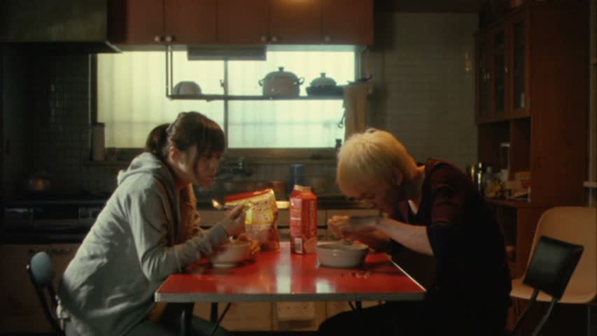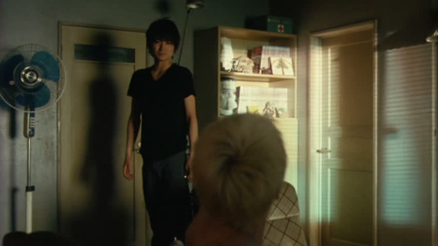 Dans Parade, tout est question d’apparence, de la banalité de la vie, et de tout ce qu’il se passe autour de nous pouvant nous intriguer et nous aider à sortir de cette vie morne, en quelque sorte. Parade s’en amuse, tout en parlant finalement, en réalité, de la banalité du quotidien Japonais, du respect de l’autre, et du respect de la vie privée. Quand Satoru, le fameux cinquième colocataire qui arrive un beau jour dans l’appartement sans prévenir alors que des meurtres ont lieu dans les environs, le réalisateur nous amène volontairement vers une série de fausses pistes. On se pose beaucoup de questions sur ce nouveau venu, d’autant plus que personne ne le reconnaît. Une présentation du personnage faite avec beaucoup d’humour, sans en faire des tonnes. Un nouveau mystère est là, et comme les précédents, il ne s’agira que d’un faux mystère. Les apparences sont trompeuses, et la vie ne ressemble pas toujours à un film policier, même si ici certains personnages ont tout de même des choses à cacher, des choses honteuses dans leur passé dont ils ne sont pas prêts à en dévoiler beaucoup. Passé le point de départ le film s’éloigne alors très rapidement de Petits Meurtres entre Amis pour se rapprocher plus d’un autre film Japonais, du moins dans le fond : Visitor Q de Miike Takashi. Puisque dans la forme, c’est l’opposé total. Eclairage magnifique, film lent, fausses intrigues, sobriété absolue, que ce soit dans la mise en scène ou dans le propos. Non, là où le film se rapproche de Visitor Q, c’est dans son personnage de l’intrus, du cinquième colocataire. Comme dans le film de Miike, il surgit un peu d’on ne sait où, et se fait assez rapidement accepter par les autres, au point qu’il prendra part à leur vie quotidienne. Il prendra des repas avec eux, ira jouer au Pachinko avec Kotomi (la scène où Kotomi revient après dans l’appartement est d’ailleurs hilarante tant le jeu des acteurs est convainquant).