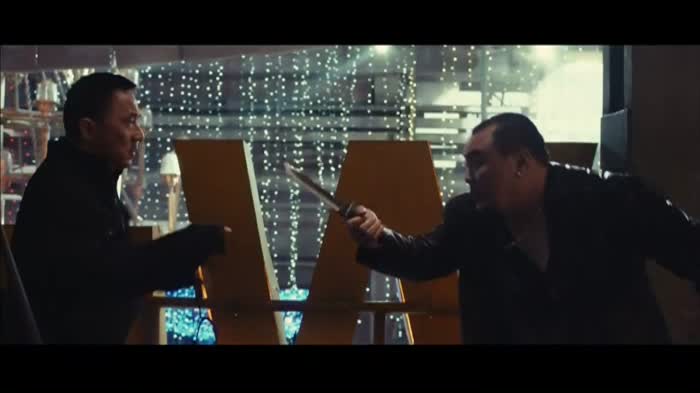 Ainsi, le film se déroule principalement à l’intérieur de la boite de nuit, pour nous montrer une prise d’otage, en voulant faire monter la tension, et surtout faire évoluer l’histoire. Les flashbacks, qui sont en général les scènes d’action qui peuvent être vus dans les bandes annonces, sont extrêmement courts. De là vient le premier défaut du métrage. Ding Sheng pouvait livrer un produit tendu et réellement différent avec ce huit clos, ramenant à des films comme Die Hard, mais il en sort régulièrement avec les flashbacks pour nous livrer de l’action. Hors, ces scènes sont en général extrêmement courtes. Prenantes certes, mais bien trop courtes mais compléter l’histoire comme il se doit, et se montrer totalement jouissive. Le choix de mise en scène de Ding Sheng, entièrement en caméra portée, rend plutôt bien, et bonne surprise, ne rend pas l’action illisible, loin de là. L’ensemble se suit très bien, et malgré par moment un certain manque d’ampleur (sans doute car la caméra est souvent très proche des personnages), ça fonctionne. Ce style de mise en scène se montrera plus concluant pour la seule vraie scène d’action se déroulant dans la boite de nuit : un combat dans une cage, plutôt bien foutu, et aux ralentis venant augmenter l’impact des différents coups.