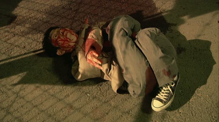Dans un premier temps, le film hésitera constamment sur la direction à prendre. Après une scène d’ouverture gore et réjouissante, le film nous présente ces personnages principaux, et dès que Tetsuo est avec ses coéquipiers, le film rajoute une couche d’humour franchement mal venue, et même parfois assez embarrassante. Les acteurs en font des tonnes et ça tombe souvent à plat. On pourra les voir s’exclamer que Tetsuo n’ai pas de petite amie, ou même voir Tetsuo faire quelques pas de danse ridicules dans la rue après avoir enfin obtenu un rancard. Ces passages n’ont absolument pas leur place dans un tel film et nous sortent de l’ambiance. Heureusement, ces passages, surtout présents avec les seconds rôles, ne viennent pas parasiter le film trop longtemps, car en bons seconds rôles, ils ne vont pas faire long feu dans l’histoire. Comme les acteurs ne sont pas franchement au top également, ce n’est pas plus mal. On pourra bien se dire que les acteurs principaux remontent la barre, et c’est effectivement le cas, même si le scénario leur offre parfois des scènes peu utiles où ils ne semblent pas forcément à l’aise (réalisateur peu intéressé par ces scènes peut être). Fort heureusement, le film nous propose beaucoup de choses à côté, et là, le niveau n’est absolument plus le même. Reprenant son univers, le réalisateur nous gratifie donc d’un mélange de gore (ça gicle même beaucoup sur la fin) et d’action, avec des combats chorégraphiés, et même encore une fois, l’usage d’un sabre, comme dans Hard Revenge Milly.