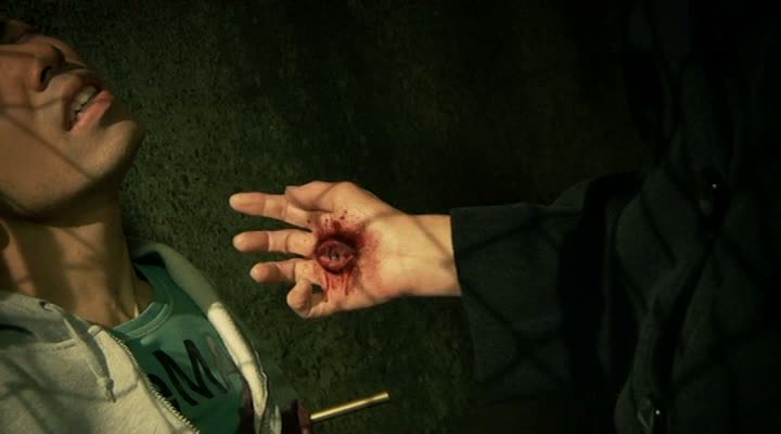 Tsujimoto Takanori n’est pas un manchot, ni un inconnu. Ayant prouvé son talent sur des œuvres de courtes durées avec Hard Revenge Milly et sa suite un poil plus longue en 2008 et 2009, il s’attaque enfin à un long métrage, tout en conservant tout ce qui faisant son cinéma, et en y ajoutant quelques ingrédients plutôt joyeux. Comme dans Hard Revenge Milly, on se retrouve devant un métrage mixant action et gore, des personnages qui prennent la pose, de la musique qui déménage et j’en passe. De quoi rassurer le fan et le connaisseur. Red Tears nous conte donc une histoire de monstres, tout ce qu’il y a de plus classique. Régulièrement, des corps sont retrouvés dans la ville. Ceux ci sont vidés de leur sang, et ont tous les membres brisés (afin d’être rangés dans une seule valise). La police s’active pour retrouver les coupables. Mais deux groupes s’en occupent. D’un côté, Tetsuo, jeune flic, joué par Ishigaki Yûma, plutôt sensible au sang, qui va petit à petit vivre une relation avec la principale suspecte de l’enquête. De l’autre, le vieux routinier Mishima, joué par Kurata Yasuaki (qui produit également le film, et qui, pour l’anecdote, affrontait Jackie Chan et Sammo Hung dans le final de Twinkle Twinkle Lucky Stars en 1985, ou Jet Li dans Fist of Legend), froid, solitaire, qui en sait bien plus sur la situation qu’il ne veut bien le laisser savoir. Un postulat de base classique et archi simpliste, auquel rien ou presque ne va s’ajouter au fur et à mesure de l’évolution du récit. Bien que la durée soit celle d’un long métrage, l’histoire tient sur un timbre, mais ça ne dérange pas franchement. Des soucis, le film en aura pourtant des tas.