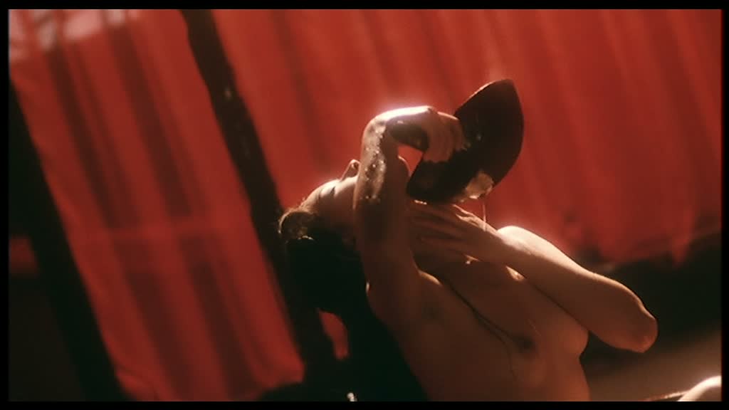 Bref, ici, on nous présente une jeune demoiselle qui se fait passer pour un homme pour pouvoir aller étudier. Son père, grand prédateur sexuel, va alors l’obliger à porter une ceinture de chasteté, qui va s’avérer plutôt utile, et dont un étudiant va rapidement en faire les frais. Occasion pour lui de se faire greffer, comme dans le premier film, un sexe de cheval. Mais passé cet élément, le film n’a plus grand-chose à voir avec son ainé, en préférant développer l’histoire d’un démon qui se nourrit de l’énergie sexuelle des humains. Ce qui va permettre d’insérer dans l’histoire de très nombreux délires, à base d’orgasmes, de femmes à pénis et j’en passe. Parfois, c’est même un peu trop et ça n’amuse plus, mais l’ensemble se suit tout de même relativement bien. Si cette suite ne bénéficie pas d’un fond comme le premier, il brille également par un plutôt bon travail artistique, que ce soit au niveau des différents décors et costumes, que de l’éclairage, souvent avec des teintes bleutées.