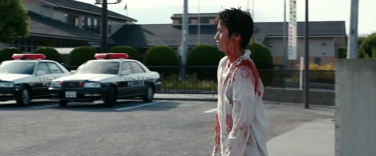 Le meurtrier justement, parlons en. Joué par le bon Fujiwara Tatsuya (Battle Royale, Death Note, Parade, Kaiji) n’est pas très crédible, et à de nombreuses occasions, bien qu’il soit l’élément déclencheur et surtout le plus important du récit, il passe parfois en second plan, comme s’il ne pouvait rien aux différents éléments, se faisant ainsi passer pour une victime. Les personnages ne sont donc pas le gros point fort du film, loin de là, mais on pouvait toujours espérer assister à un spectacle fun et rythmé. Déception encore une fois, puisque par moment, le film va se traîner en longueur, en s’engouffrant dans des situations pour le moins répétitives. Nos personnages prennent le bus, et quelqu’un tente de les attaquer. Puis ce sera le train. Puis la voiture. Le scénario ne cherche jamais franchement à évoluer de son point de départ, et c’est avec un regard plutôt ennuyé que l’on suit le long spectacle. Pour autant, malgré toutes les critiques incendiaires, tout n’est pas à jeter dans le métrage. Miike prouve, comme toujours, qu’il sait tenir une caméra et offrir un spectacle qui tient debout, du moins, visuellement. Oui, c’est travaillé, les plans sont beaux et bien éclairés, certains plans sont peut-être même impressionnants, mais ça ne suffit pas. Bien entendu, oui, certaines scènes seront captivantes, voir même par moment, intéressantes, bien que hésitantes voir bâclées.