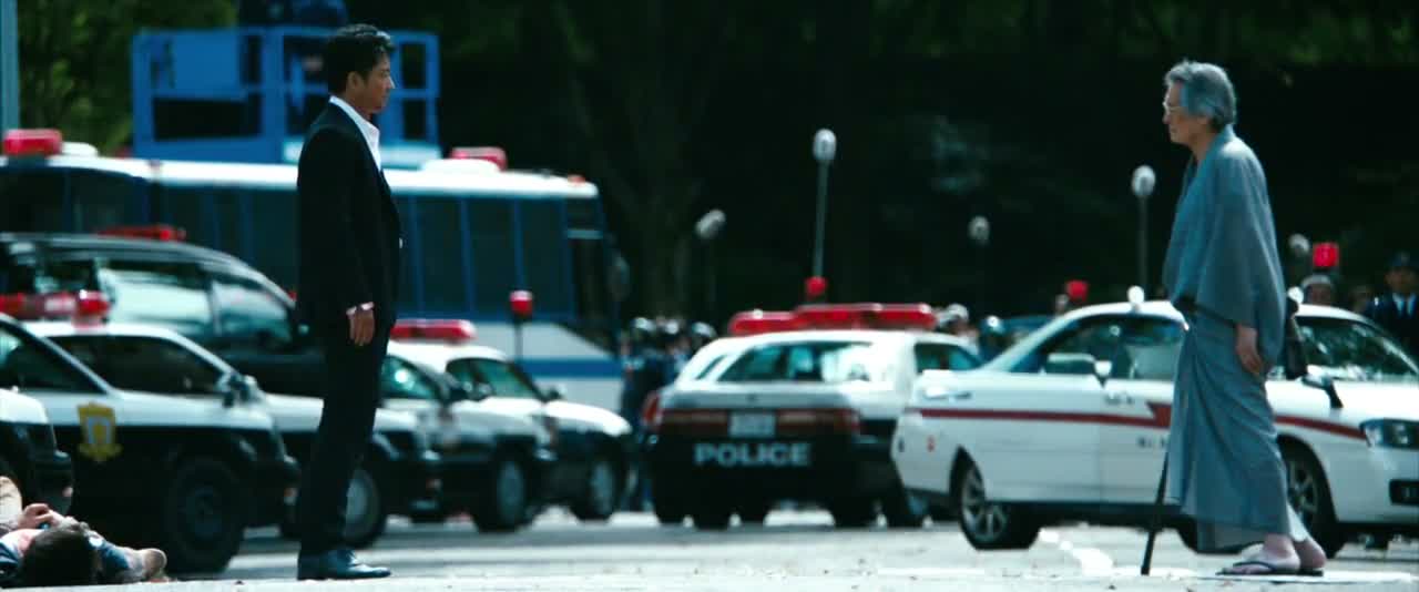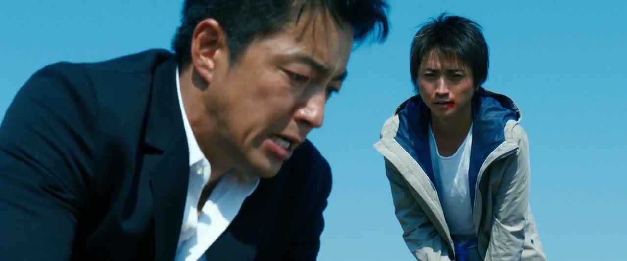 La scène sur le quai de la gare promet quelques bons moments, mais ne marche jamais pleinement, la faute à des acteurs qui ne jouent pas franchement très bien. D’ailleurs, finalement, seul Osawa Takao sort son épingle du jeu lors de quelques scènes, notamment lors de ses confrontations avec Fujiwara Tatsuya, qui permettent de faire enfin monter un peu la sauce, bien que tardivement. Le plus gros soucis du métrage est bel et bien son scénario, parfois répétitif, souvent peu subtil, préférant gâcher ses bonnes idées, et c’est bien dommage. Car du potentiel, il y en avait, et on arrive par moment à en apercevoir au détour de quelques scènes. On a souvent l’impression que ce qu’il manque au métrage, c’est un vrai regard sur son histoire. Miike filme, correctement certes, mais semble rester hermétique à son histoire et à ses personnages (bon, pour les personnages, on peut le comprendre), comme s’il filmait avec une certaine distance, sans vouloir s’impliquer. C’est la désagréable sensation que l’on a en regardant ce divertissement, dont tout n’est pas à jeter, mais dont nous sortons amèrement déçus.