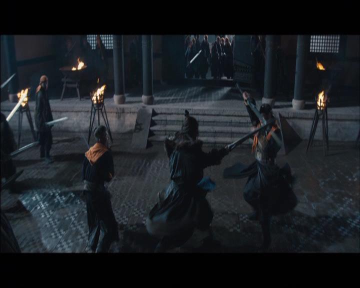 Alors il y a bien quelques moments qui sortent du lot, à savoir le fameux banquet de Hongmen avec en point d’orgue sa fabuleuse partie de Go que s’offrent nos deux camps avec un Anthony Wong bien énervé, un des seuls moments tendus du film tiens ! Mais la meilleur scène du film, et peut être aussi la plus sobre en terme de réalisation, n’est autre que l’introduction du général campé par Andy On. Bonne mise en situation avec une arrivée mystérieuse de Andy On, s’ensuit un court mais intense combat d’épéistes à l’ancienne avec une bonne gestion de l’espace, une chorégraphie réussie et de la puissance dans les coups donnés, tout le contraire des nombreuses séquences de batailles qui suivront. Afin de nous aider à comprendre ce qu’il se passe lors de ces dernières, Daniel Lee à juger bon de nous mettre quelques plans aériens (plutôt réussis) entre deux séquences navrantes au sol, mais manque de chance, ça n’aide pas à la cohérence globale vu que l’enchainement des différents plans manque d’un liant certains. Alors bon, essayer de nous vendre une mise en scène stylée avec effet de montage à l’appui pour nous faire avaler la pilule : non merci ! Le spectacle manque de personnalité, les effets de style donnent l’impression d’avoir été ajoutés afin de pallier à une réalisation maladroite, et le manque de cohérence du tout ambiant a fini par me fatiguer, déjà que le scénario était ennuyeux au possible.