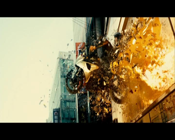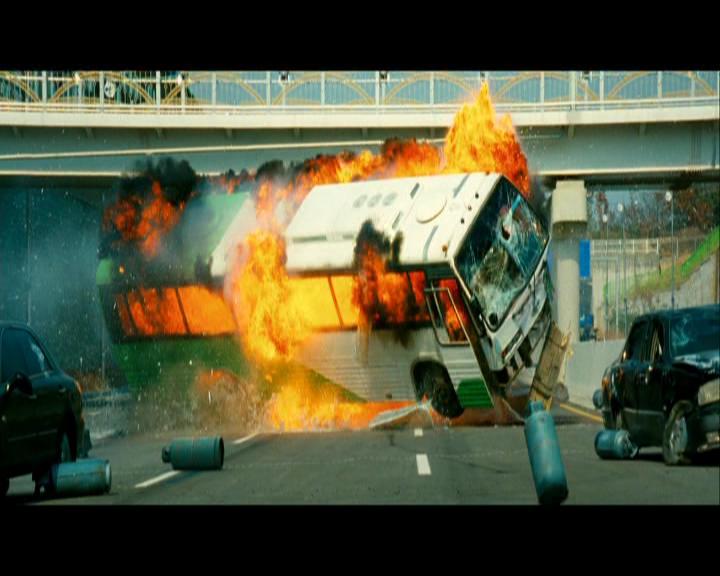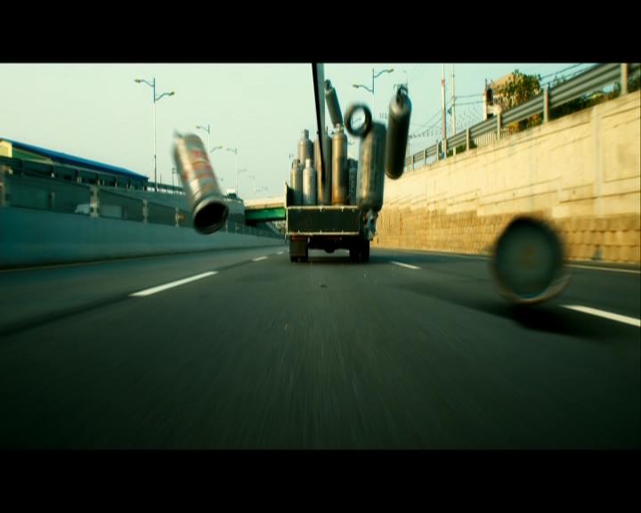 Dès que ça bouge, Quick assure le spectacle ! Bon rien n’est réellement mémorable à vrai dire, mais le réalisateur Beom-gu Cho à le sens du spectacle (d’ailleurs, avant Quick, il a mis en boîte Three Fellass aka Bar Legend, nu film chiant mais aux bastons de rue magnifiques !). Même si les courses poursuites ne sont pas toujours fonctionnelles dans le récit, il faut bien avouer que ça défouraille pas mal. Ça manque de personnalité certes, mais c’est suffisamment bien emballé et monté que ça reste plutôt impressionnant. Explosions aux ralentis et parfois en léger travelling (c’est beau), impression de vitesse dès que le motard accélère (c’est rapide), voitures qui volent dans tous les sens (c’est virevoltant), lâchées de bonbonne de gaz sur l’autoroute (c’est comme dans The Island, du Mike Bay tiens), saut de moto entre les immeubles (c’est comme dans True Lies tiens), euh…il faudrait être aveugle pour ne pas voir les différentes influences qui pullulent dans tous les sens. Quick nous offre une compilation de ce que l’on a déjà vu partout ailleurs et se permet même de se positionner à la limite de la parodie / plagiat. Mais bon, le spectacle se veut généreux, et le côté crétin toujours présent fait que j’ai apprécié le spectacle. Même si la fin se veut en déca du reste, le film assure le divertissement, d’autant que techniquement, c’est très honnête. Les CGI (remember Torque tiens, ahaha !) sont en plus bien réussis et pas très voyants. Du bon gros spectacle crétin quoi !