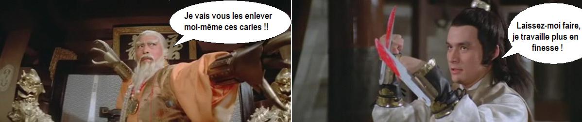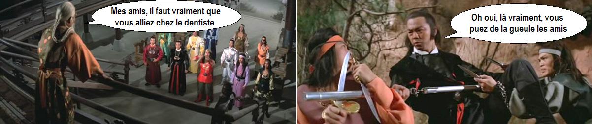 Pourtant, le déroulement est loin d’être désagréable. L’amitié qui se construit entre les deux hommes est bien construite, et les combats qui l’accompagne sont plutôt bien chorégraphiés, et parfois originaux. Visuellement, on est plutôt dans le haut du panier, c’est de la bonne production Shaw Brothers qui lorgne un peu sur le western en termes d’ambiance et de décors. En revanche, le film pâtit clairement des flashbacks. Plutôt nombreux, pas très fins, voire assez lourds, avec des combats plutôt moches, ils conservent le mérite de faire avancer l’histoire et de rythmer le film.