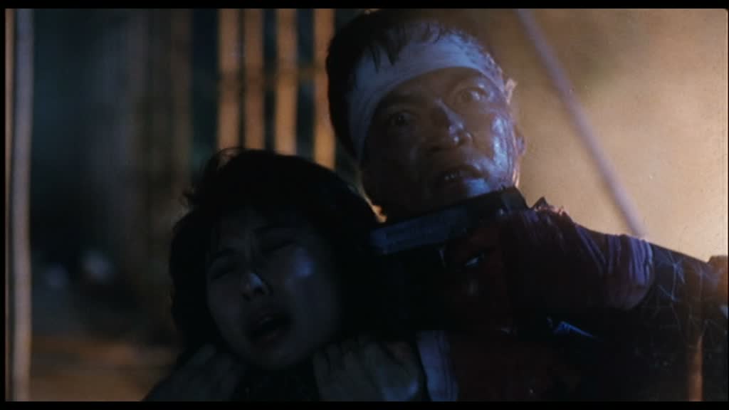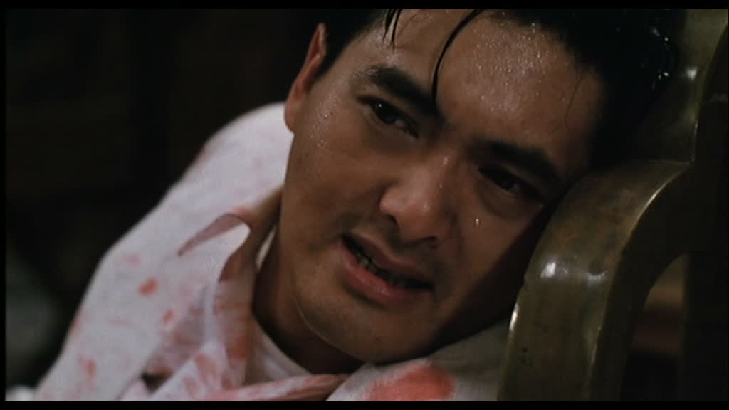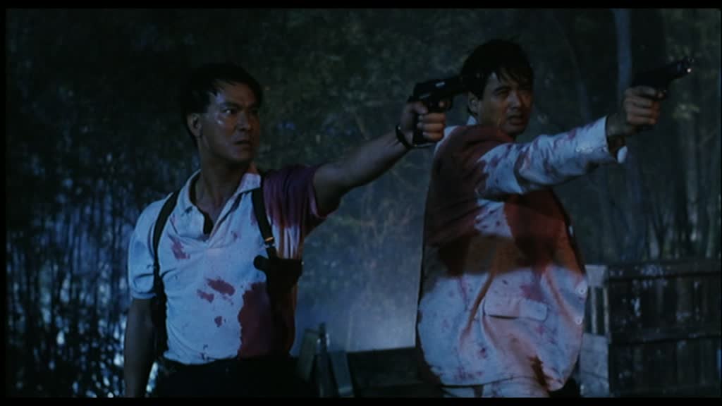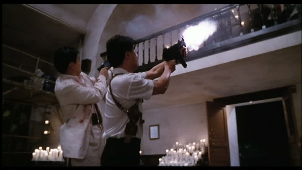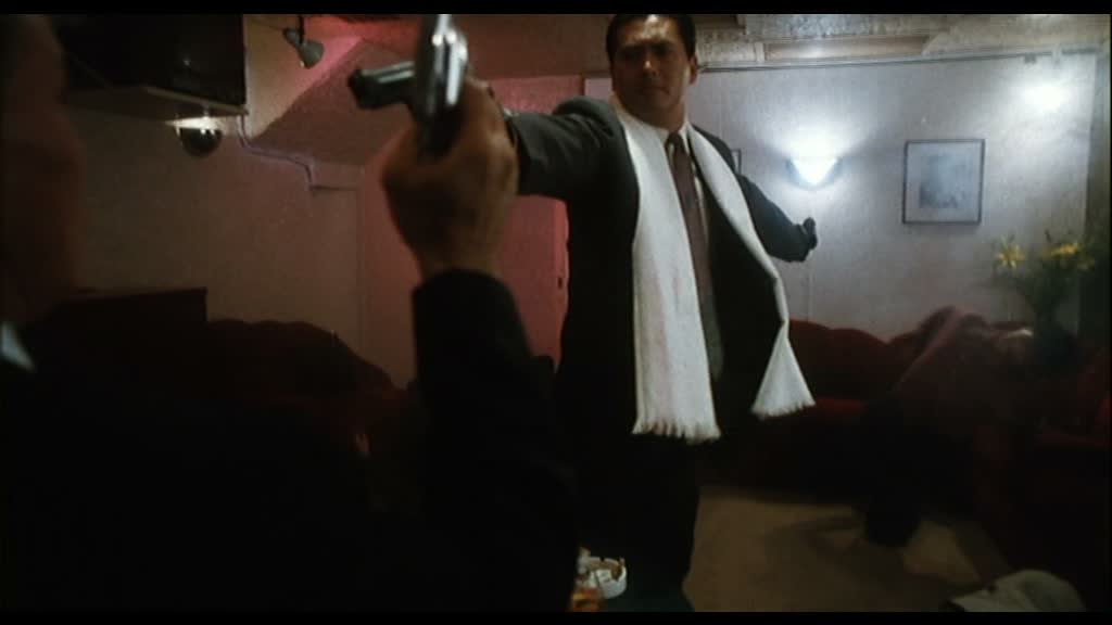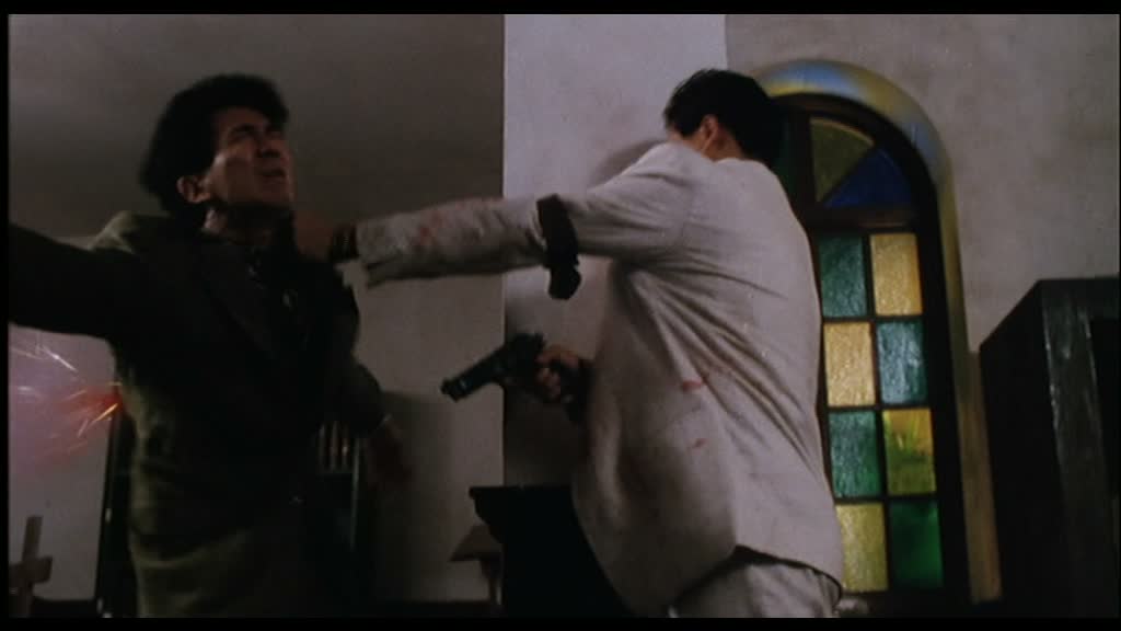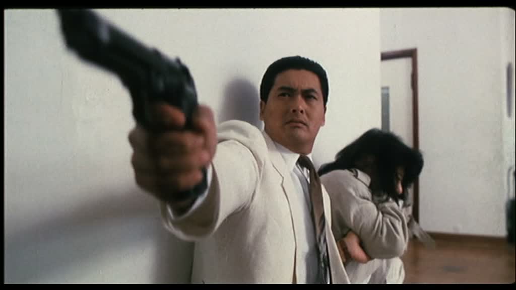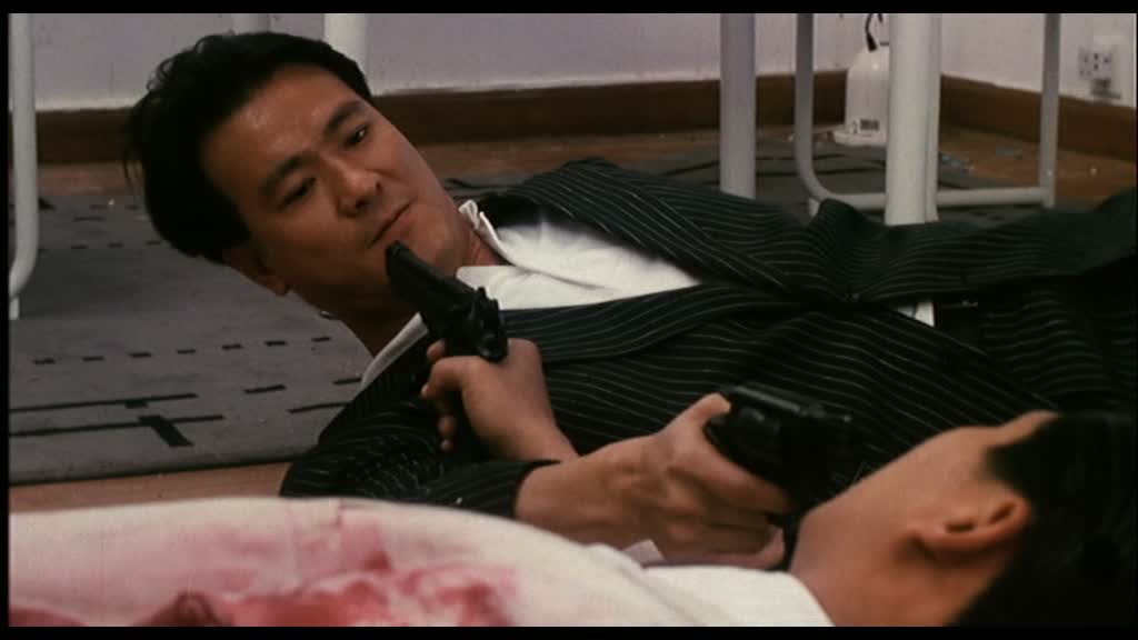 Entrée en scènes de Shing Fui-On (Prison on Fire de Ringo Lam) dans le rôle du grand méchant, pas si méchant que ça, et de Danny Lee dans le rôle du flic avec lequel Jeff va se lier d’amitié malgré tout ce qui les oppose. Il retrouve ainsi Chow Yun-Fat deux ans après le grand City On Fire, encore de Ringo Lam, et retrouve John Woo la même année que Just Heroes. Bref, tous les oppose, mais comme il le dit, finalement, tous les deux gagnent leur vie en se servant d’une arme. Danny Lee (Organized Crime & Triad Bureau), revenons sur lui justement. Oui, ses costards à rayures ressemblent à de vulgaires pyjamas, mais pourtant, il a la classe, ses apparitions sont marquantes, comme cette scène dans l’appartement de Jennie où il est confronté pour la première fois vraiment, seul à seul, avec Chow Yun-Fat. Un très grand moment de tension, avec deux grands acteurs. Leur amitié qui va naître petit à petit est tout à fait crédible. Shing Fui-On joue le grand méchant, voulant à tout prix éliminer Jeff, et pourtant, en y regardant de plus près, il est le personnage le plus pitoyable de tout le métrage (voir de la carrière de John Woo).