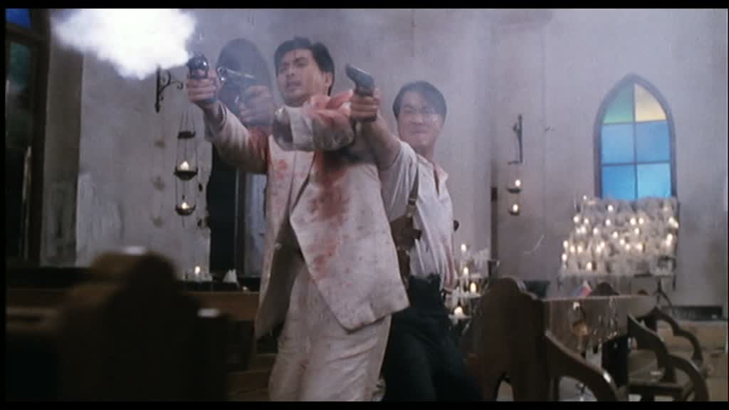 De tous les personnages, il est le seul à avoir besoin des autres pour se protéger et survivre, il est le seul toujours en vie uniquement grâce (ou à cause) de la chance. Jeff lui-même est sur le point de l’éliminer, mais est interrompu avant de pouvoir finir le travail. Quand son ami décide de l’aider à arranger ces soucis, Shing Fui-On reste en vie uniquement grâce au destin, à un chargeur vide. Lui-même conscient de ces faiblesses et de son impuissance, il est le seul personnage à devoir porter en permanence un gilet par balle pour continuer sa route. Comme si au final, le véritable ennemi de Jeff n’était pas celui qui veut le voir mort, mais lui-même, prisonnier de son tragique destin, dont il ne peut s’échapper, malgré l’aide de ses amis. Sous ses aspects de polar parfois bien bourrin (voir la scène de l’église, l’apothéose du métrage), The Killer est bien plus intéressant qu’il n’en a l’air, c’est un film riche, où l’on retrouve tous les thèmes de Woo (l’amitié, l’honneur). Alors oui, il n’est pas parfait, certains de ses défauts étaient déjà là lors de la sortie du métrage (les éléments cités plus haut, la scène de l’aéroport, en dessous du reste), mais l’œuvre dans son ensemble possède une telle force, procure un tel plaisir, qu’on a envie de ne pas voir ses défauts.