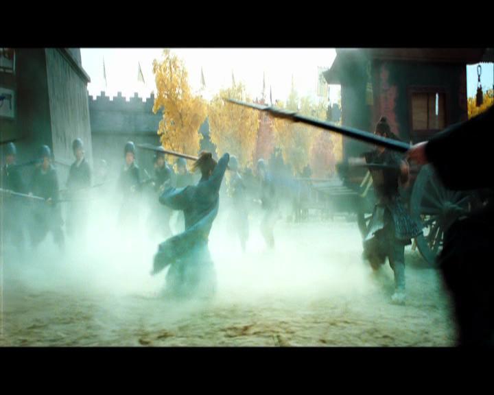 Bien évidemment, le manque d’enjeu ne va pas en faveur des différents combats parsemant le film et , oh surprise, aucun ne se passera sans notre Donnie galactique ! Les combats sont sympas, plutôt bien filmés qui plus est, mais le souci est qu’il y a toujours un petit souci justement : photographie bizarre pour l’un, trop court pour l’autre, trop sombre pour le suivant, trop plat pour la bataille du début … bref, c’est sympa, mais cela reste quelconque et pas toujours maîtrisé donc ! Dommage car la mise en scène sait donner une certaine puissance aux coups donnés, et quelques passages valent vraiment le coup d’œil ! Ainsi, un combat dans un passage étroit ne sera pas sans rappeler Seven Sword, où encore Donnie qui court en pleine forêt en évitant les flèches ! Bref, quelques bons moments tout de même, mais que cela reste banal et de l’ordre du déjà vu.