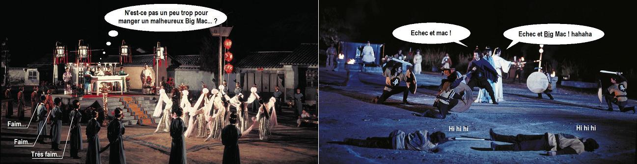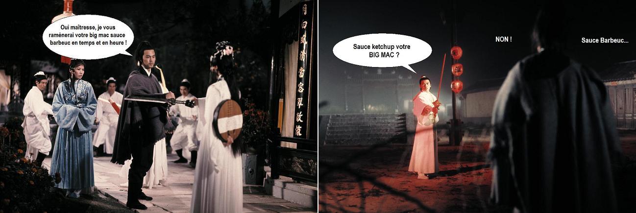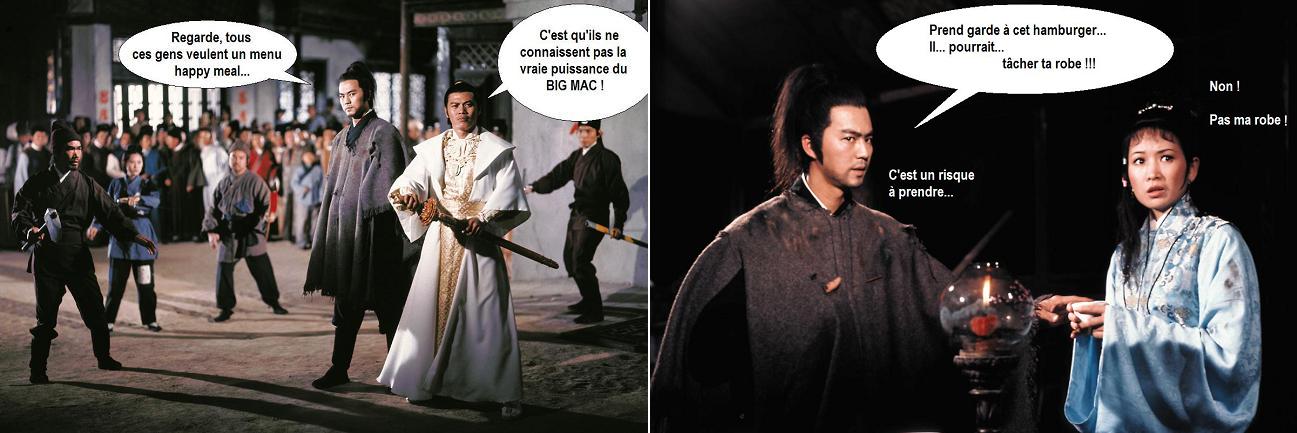 Chu Yuan, c’est l’homme des complots et des clans. Il suffit de voir sa filmographie, Le complot des clans, La guerre des clans, Autant en emporte le clan, Les clans de la mer, autant de chef d’œuvres du 7ème art à l’ambiance superbement portée par des intrigues complexes. The Magic Blade, intrigue complexe ? Pas du tout, l’intrigue du Sabre Infernal est d’une simplicité sans nom : lisez le synopsis, et ca y est, vous avez presque vu le film ! Le film consiste en un enchaînement de combat sans grand sens si ce n’est de se rapprocher de la fin.