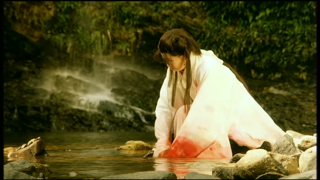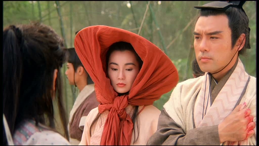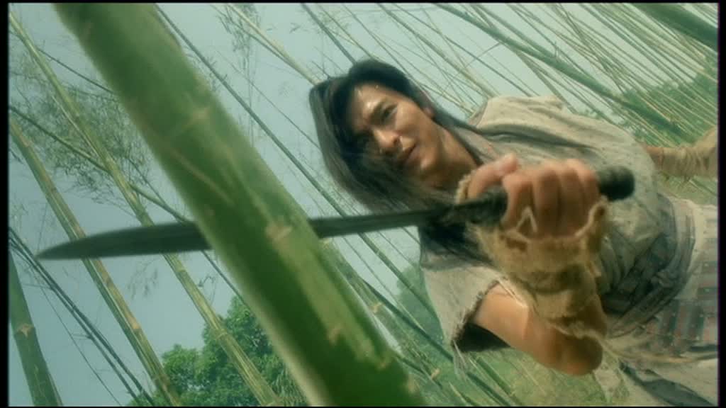 Un casting en or, pour un film misant beaucoup sur ses personnages, il fallait bien cela. Car oui, le scénario de The Moon Warriors est extrêmement simple (comme souvent me diront certains), mais les personnages, eux, sont travaillés et possèdent une vraie profondeur, ce qui les rend attachants, et donc, intéressants. Le scénario ne nous raconte que la fuite d’un prince, dont le frère (Kelvin Wong) a décidé de raccourcir la durée de vie. La première partie du récit va privilégier l’action, le scénario se fait plutôt mince, mais le divertissement lui et bel et bien présent, même si rien ne va au départ rendre The Moon Warriors différent des autres métrages du genre. Les combats sont de très honnêtes factures, et les personnages se veulent attachants dés le départ, entre le pêcheur un peu simplet mais doué en arts martiaux joué par Andy Lau, ou tout simplement les deux guerrières jouées par Anita Mui et Maggie Cheung, dont on sent dés le départ une certaine rivalité. Mais c’est dès l’arrivée dans le village de Fei que le scénario va alors se mettre à développer totalement ses personnages, et se démarquer des autres films du genre. Car dans le fond, le métrage n’est pas un Wu Xia Pian comme les autres, non. Au final, le métrage, sous ses aspects de film d’époque, de film contenant de nombreux (et beaux pour la plupart) combats aux sabres, n’est qu’une romance de plus, mais une romance sombre et extrêmement mélancolique, un chassé croisé de sentiments, qui va permettre de rendre les personnages plus humains, et de leur donner un sens profond aux différentes scènes.