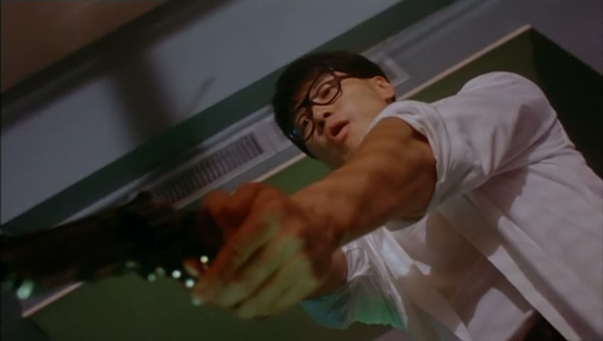 En gros, on rencontrera, dans des qualités d’effets spéciaux variables, une femme borne d’arcade qui se fait violer, des démons liquides qui font penser au blob, des démons qui explosent, des horloges volantes qui attaquent des humains, des démons qui se régénèrent tout nus sur des câbles électriques, et j’en passe et des meilleures. La palme revenant probablement à la femme moto qui ne veut pas se laisser monter… Ça va souvent loin, sans être déplaisant, loin de là, et on retrouve par moment la patte Tsui Hark dans des délires de combats aériens en pleine course poursuite en voiture, ou autres effets visuels un peu datés aujourd’hui (comme un combat sur le toit d’un avion).