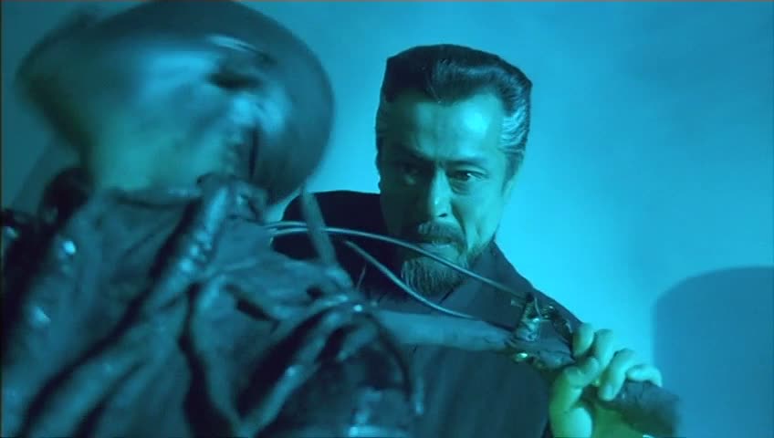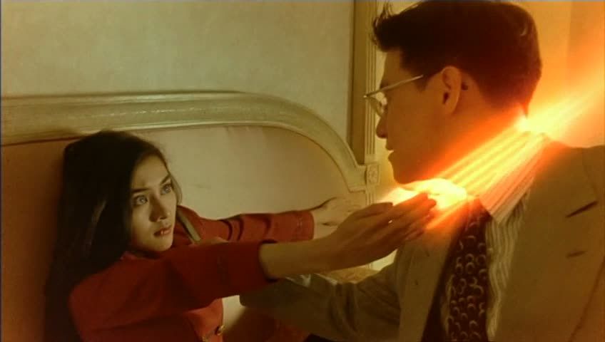 Le film regorge d’idées folles de ce genre, et ne s’en cache pas, il s’en amuse même, dans le but de nous amuser également, et de coller à son aspect manga. En ce sens, c’est même plutôt réussi, et la photographie très flashy de Andrew Lau correspond même plutôt bien à l’âme du métrage. On pourra finalement retenir pas mal de bonnes choses du métrage, comme son trio d’acteurs principaux que l’on aime voir (Jacky Cheung ne surjoue pas trop en plus), ses scènes venues d’ailleurs qui font plaisir, son rythme soutenu, Michelle Reis magnifique (et souvent nue, mais on ne verra rien…) et ses scènes d’action folles où l’on reconnaît la marque de Tsui Hark. Malheureusement, on pourra également retenir par mal de mauvaises choses dans le fond, comme un scénario prétexte malgré quelques bonnes idées, des passages un peu trop mélodramatiques qui ne fonctionnent pas, ou encore des effets spéciaux digitaux pas franchement convaincants et une bande sonore par moment énervante. Dommage. The Wicked City reste une rareté intéressante et fun malgré tout. Un petit film attachant.