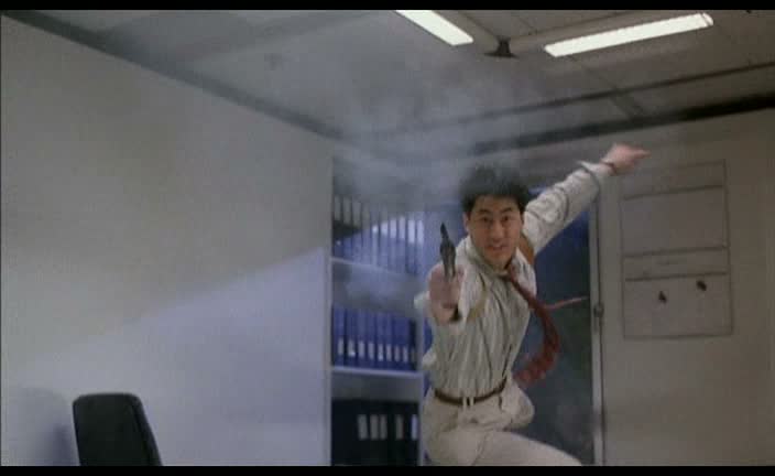Après un premier opus sous forme de polar violent, puis une fausse suite sous forme de film d’action avec de l’humour léger, Yuen Woo Ping revient une nouvelle fois avec une dernière suite. Un peu la suite de trop dans le fond. Tentant de revenir à un polar sérieux comme l’était le premier opus, tout en le mâtinant de quelques combats, ce nouvel opus n’a aucun rapport avec les précédents. Donnie Yen, qui était de la partie dans les deux opus, ne revient pas. Nouvelle histoire, nouveau casting, tout change. Nous suivons cette fois-ci deux flics de la brigade financière qui tentent de coincer un truand. Pour ce faire, toutes les techniques sont bonnes, à commencer par des écoutes. Comme les deux précédents, l’histoire est simple. Le ton se veut plus sombre, comme pour le premier opus, peu de blagues seront présentes. Au casting, outre Cheung Kwok-Leung, que l’on retrouva à l’époque dans un bon paquet de films de ce genre, Michael Wong, pas le meilleur acteur du monde certes, mais toujours sympathique à voir à l’écran (le premier In The Line of Duty mais également le quatrième opus, City Hunter ou encore Thunderbolt). Ce sont bien entendu les gentils, tandis que Sharla Cheung joue Suki, la petite amie de James (Cheung Kwok-Leung), plus habituée aux rôles légers dans les films de Wong Jing (Magic Crystal, God of Gamblers et ses suites, Royal Tramp). Ici, elle joue la « vraie » méchante du métrage, manipulant tout le monde en fonction de ses besoins et de ses envies de grandeur.