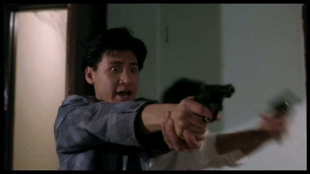 Mais après ce début fort prometteur, Tiger Cage se calme un peu, voir se complait le temps d’une dizaine de minutes dans la niaiserie. Si certains passages sont clairement de trop (le passage sur le bateau), Yuen Woo Ping ne semble les utiliser que pour mieux nous tromper, autant qu’il trompe ses personnages, en revenant rapidement à un contenu plus violent et plus adulte. Car c’est bien simple, les personnages tombent les uns après les autres à une vitesse folle, et pas toujours comme on l’attend. L’intrigue va en effet laisser place aux acteurs, les vrais, laissant les artistes martiaux de côté. C’est bel et bien Jacky Cheung, Simon Yam et Carol Cheng qui dominent le casting, et contrôlent l’histoire. En faisant tomber les personnages comme des mouches, Yuen Woo Ping donne un côté imprévisible à son histoire pourtant simple au possible. Il n’épargne personne, mettant chacun de ces personnages dans des situations dangereuses où en général, quelqu’un va perdre la vie. Il ne lésine pas sur la violence ou sur la cruauté des actes, bien au contraire. Les mises à mort sont froides et expéditives. Même les rares survivants dégustent. Si le film prend le plus souvent des allures de polar sombre et musclé, parfois, les poings viennent remplacer le temps de quelques rares scènes les armes à feu, permettant ainsi à certains acteurs de s’exprimer.
