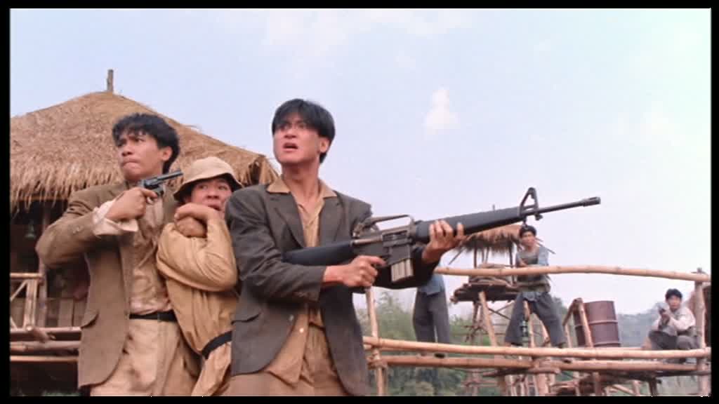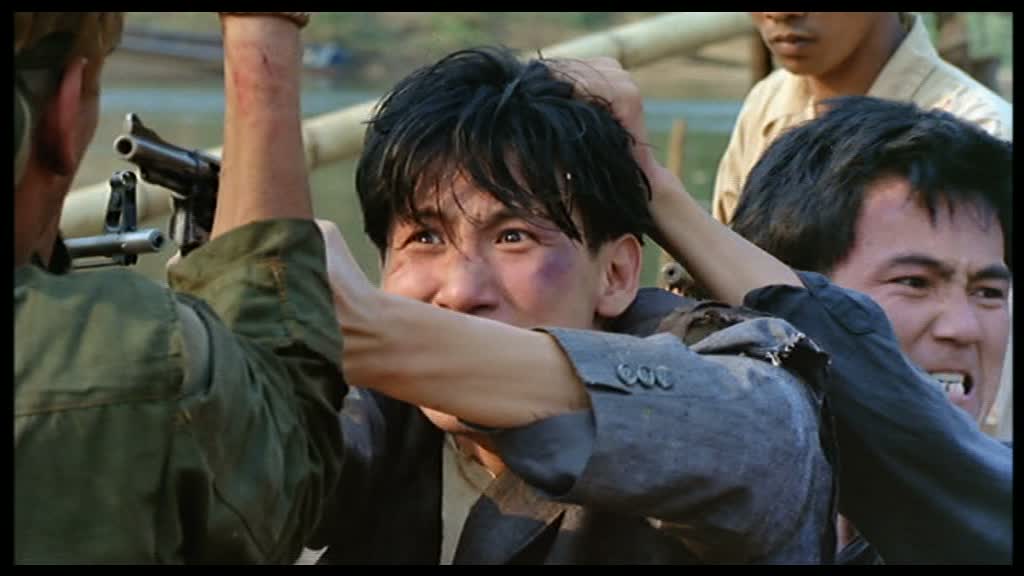 Seulement là où dans ces précédentes œuvres, l’amitié était capable de faire des miracles, l’amitié était plus forte que tout le reste, John Woo va en quelque sorte faire l’opposé ici, amenant, passé la première partie, ses personnages en enfer, l’enfer du Vietnam. Forcés de fuir Hong Kong, Ben, Frank et Paul arrivent là-bas, en pleine guerre, et vont tenter de survivre au chaos. La plus grande force d’Une Balle dans la Tête est belle et bien sa dramaturgie. Le film est incroyablement bien écrit, tout comme les personnages, véhiculant des émotions fortes. La seconde partie du récit, celle de la guerre, pure et simple, sera très forte, avec l’arrivée de nouveaux personnages, en particulier Luke, joué par un comme toujours parfait Simon Yam, dans le rôle d’un tueur qui va aider la bande, mais également Sally Yen, une chanteuse retenue prisonnière, droguée, jouée par Yolinda Yan, n’ayant en tout que 7 films à son actif. Dommage, puisqu’elle s’avère convaincante et extrêmement jolie à l’image, parfait pour son rôle de « poupée brisée ».
