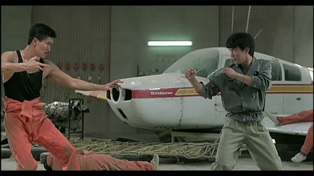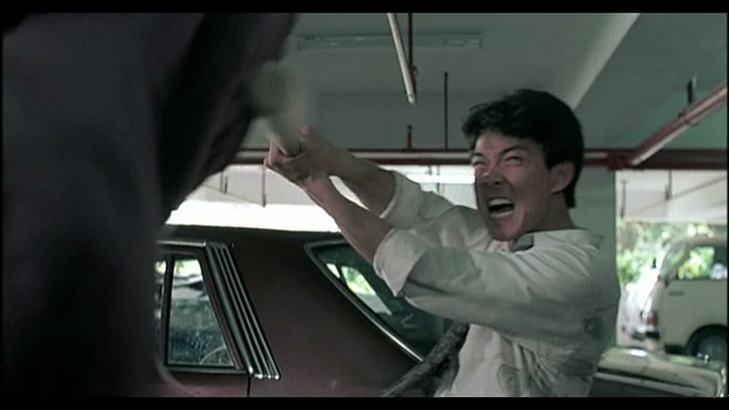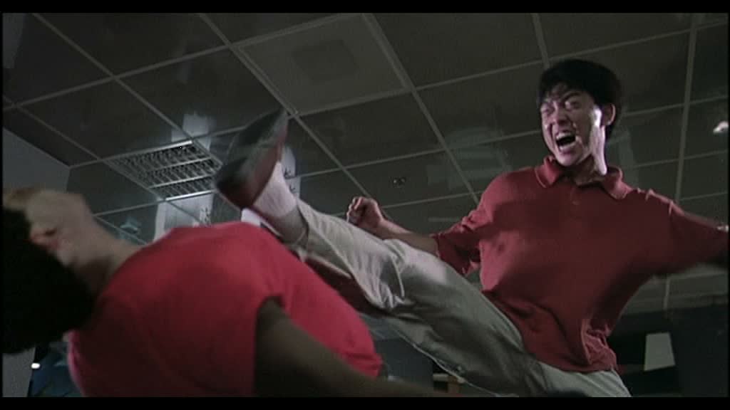L’intrigue est toujours aussi mince, mais cette fois-ci donc, non articulée autour de l’humour, mais bel et bien autour du principal ingrédient qui nous intéresse, et qui manquait cruellement dans sa précédente réalisation : l’action. En points communs, on notera surtout la présence au casting dans un rôle principal de Cynthia Rothrock. On nous invite ici à suivre les aventures de Hsia, un avocat, défenseur de la loi à la fois de jour dans les tribunaux, et de nuit, à renforts de coups et de balles. Joué par le très doué (je ne le répéterais jamais assez) Yuen Biao (Dragons Forever, On The Run), l’introduction met dès le départ sur ses penchants de justicier hors des tribunaux, en nous le présentant comme un inspecteur Harry, prenant la voiture et le gros magnum pour venir à bout de ses adversaires. Aucun doute, le métrage prend dés le départ des allures de série B, mais une série B pleine de punch, pleine d’action, et se montrant parfois violente et expéditive.