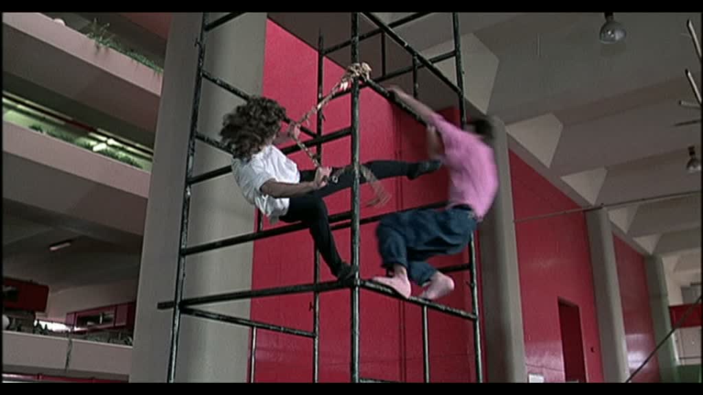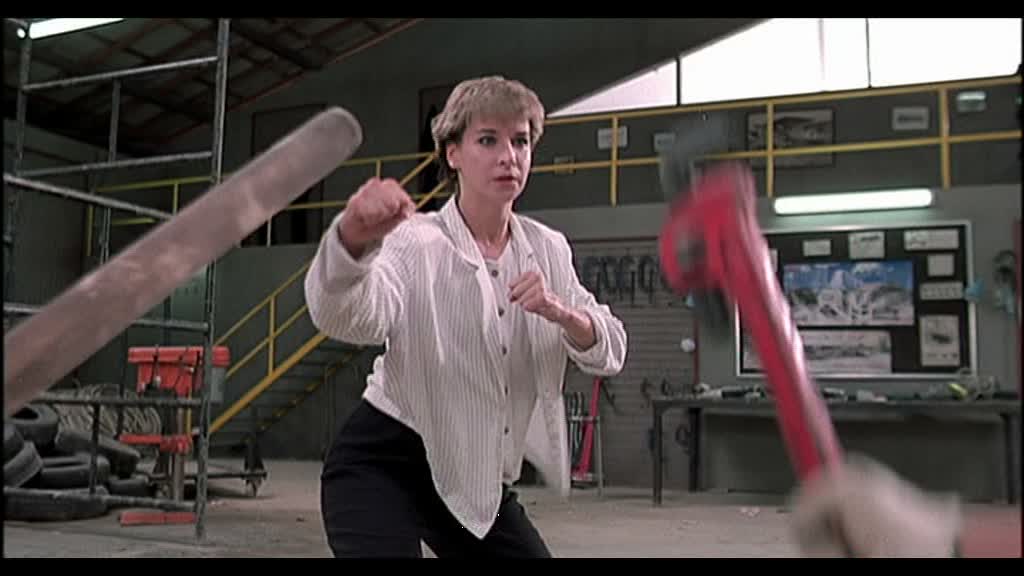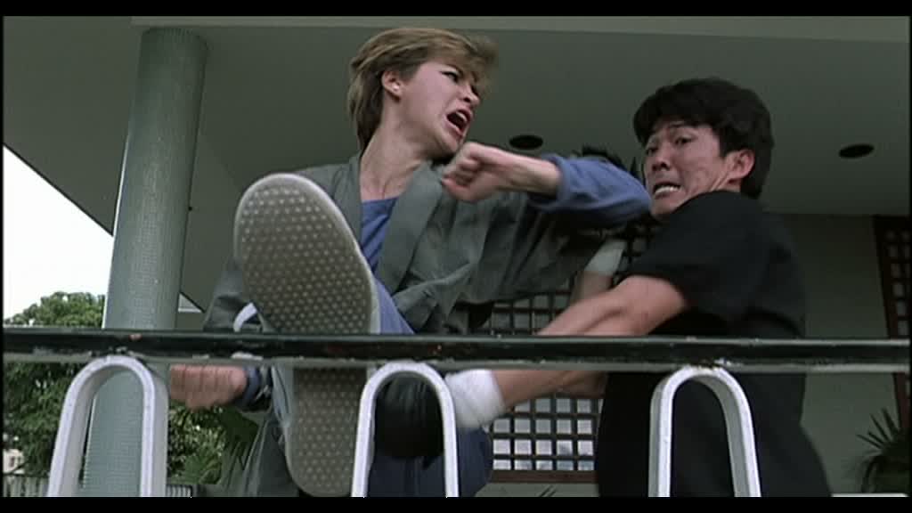 Le scénario se montre donc mince comme dit plus haut. Une banale histoire de règlements de compte, avec son lot d’action, de vengeance, de flics ripoux et j’en passe. Pour épauler Yuen Biao, à la fois dans l’histoire et dans les scènes d’action, le scénario rajoute donc le personnage de flic jouée par Cynthia Rothrock, qui sera d’ailleurs par moment doublée par Yuen Biao lui même, et lors de certains plans, l’effet est bien voyant (il ne porte même pas de perruque). Si dans les scènes d’action, elle donne tout ce qu’elle a (elle montrait déjà ses capacités dans Yes Madam !), on ne peut pas dire une fois de plus qu’elle soit bonne actrice, mais ça, Corey Yuen s’en moque, se concentrant sur l’action, qui débarque à tout moment, pour le meilleur et pour le meilleur. Ainsi, après une énième exécution et l’ajout de quelques clichés du genre (le témoin à protéger, les flics enquêtant sur notre justicier), le film ne veut plus s’arrêter, enchaînant les combats d’anthologies. Yuen Biao donne de sa personne, nous sommes en 1986, et il est souple comme jamais, le prouvant à chaque instant dans des scènes parfois folle, comme cette poursuite dans le parking, où il évite des voitures lui fonçant dessus. Arrivé là, plus rien ne s’arrête, les personnages sont uniquement destinés à se croiser les uns les autres pour amener le combat suivant, ou parfois, l’exécution suivante.