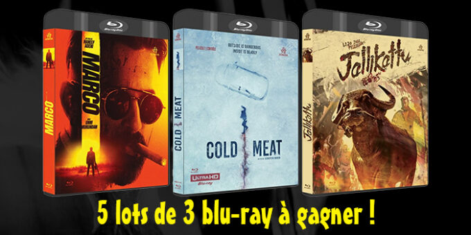 Attention, bien que les films soient neufs et sous cellophane, les exemplaires de Marco et Cold Meat n’ont pas le fourreau carton présent dans le commerce. Seul Jallikattu sera gagné avec son fourreau.
