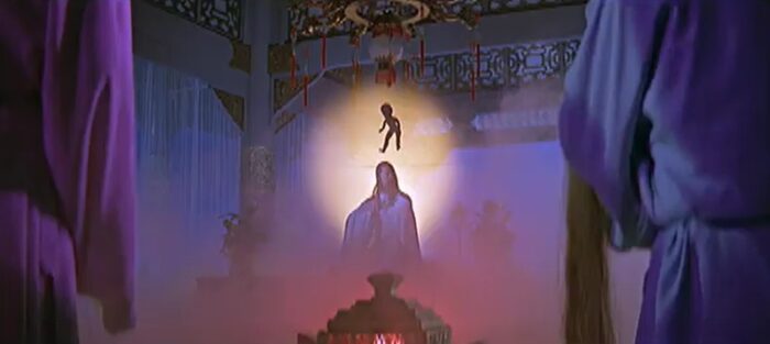 Parallèlement, on a également pu apprécier un délicieux petit sous genre, le Wu Xia Pian à effets spéciaux, à travers des titres comme Buddha’s Palm et Holy Flame of the Martial World. Généralement l’œuvre de relatifs débutants, il s’agissait de coûteuses tentatives de refidéliser (par une modernisation visuel et thématique) un public qui commençait à se lasser du genre. Les tentatives échoueront toutes mais préfigurent sur bien des points la vague du néo Wu Xia Pian des années 90.