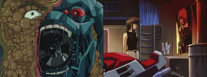 Les boomers, quant à eux, une fois débarrassés de leurs tissus organiques, renvoient indéniablement au squelette métallique et aux yeux rouges du T-800 de James Cameron dans Terminator (1984) – mais aussi à la créature du film Krull (Peter Yates, 1983) – tandis que l’introduction de la série, conçue comme un vidéoclip de la chanteuse et héroïne Priss, est entièrement basée sur celle du film Les Rues de feu (Walter Hill, 1984) qui, échec commercial relatif aux États-Unis, fut un succès au Japon.