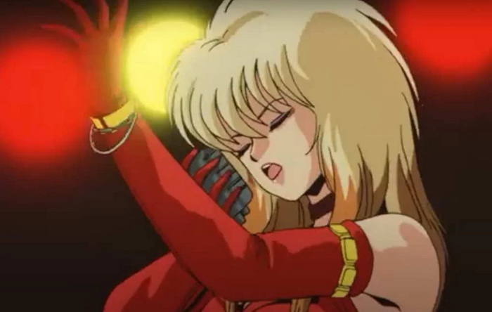 En revanche, cet échec permettra la conception de Genesis Climber Mospeada (25 épisodes diffusés de 1983 à 1984, ainsi qu’un OVA en 1985), préalablement intitulé « AD Patrol », prémisse plus précis de ce qui deviendra la brigade anti-boomers de l’univers de Bubblegum Crisis. En partenariat avec le studio Tatsunoko, Suzuki et Aramaki inventent des aventures au sein desquelles, dans un monde post-apocalyptique, des flics à motos capables de se transformer en robots (encore l’inspiration Macross) se trouvent mêlés à un conflit opposant humains et extra-terrestres. De plus, parmi les personnages élaborés pour la série se trouve Iero Belmont, personnalité androgyne qui prend l’apparence d’un jeune soldat mais aussi d’une chanteuse pop afin de passer outre la surveillance de ses ennemis. La création de Belmont est des plus intéressantes pour notre sujet. En effet, enthousiasmés par le succès du personnage de la jeune chanteuse Lynn Minmay dans Macross, Suzuki et Aramaki conçoivent alors celui de Nora, musicienne elle aussi, mais aussi motarde, calqué sur l’idol (star de la pop nipponne) Akina Nakamori, connue pour son attitude provocante et rebelle.