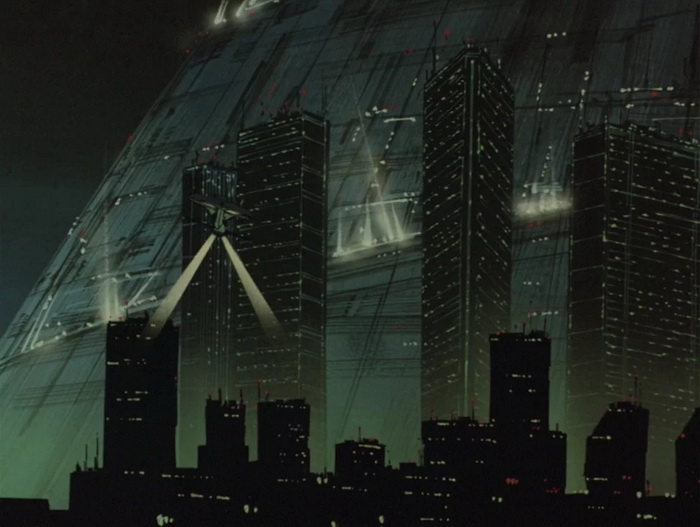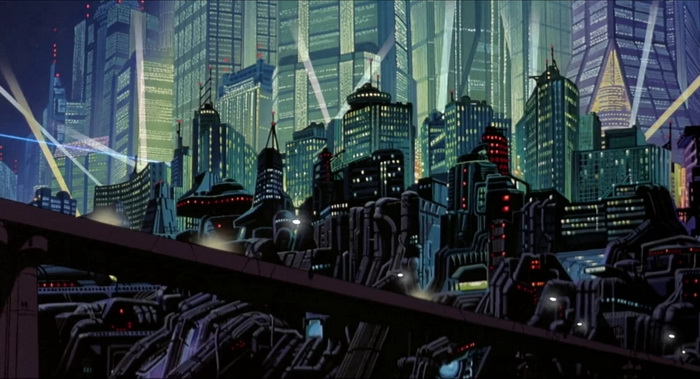 Les prémisses de Bubblegum Crisis sont à déceler dans une flopée d’oeuvres et réalisations antérieures, dont la plus déterminante, comme nous l’avons dit, est la licence Macross. Bien entendu, l’ombre du manga Akira de Katsuhiri Otomo, en parution depuis 1982 mais n’ayant pas encore connu son adaptation animée, plane, ne serait-ce que dans les représentations urbaines écrasantes de la MegaTokyo de 2033, renvoyant forcément à la Néo-Tokyo du manga, elle aussi reconstruite sur les cendres d’une métropole dévastée par une catastrophe en 2019.