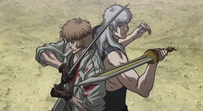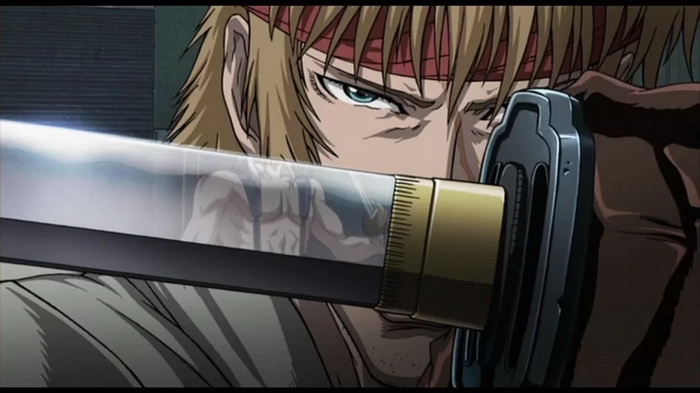 L’utilisation de mutants au début du film aurait aussi gagné à être davantage élaborée au lieu d’être purement et simplement abandonnée. De même, la sous-intrigue impliquant une armée de résistant luttant contre le pouvoir despotique de Marcus et l’asservissement du peuple par la peur d’un virus mortel est, à défaut d’être originale, intéressante. Cependant, tout ceci est avant tout utilisé pour concevoir quelques ficelles scénaristiques facilitant la rencontre avec le boss final; mais aussi pour mettre en place une semi amourette entre Colin et une jolie prostituée. Finalement, complexifier ou approfondir le propos n’est tout bonnement pas l’objectif: Abramovitz et Kawajiri ont décidé que ça allait castagner, un point c’est tout. Acceptons-le donc et ne gâchons pas notre plaisir.