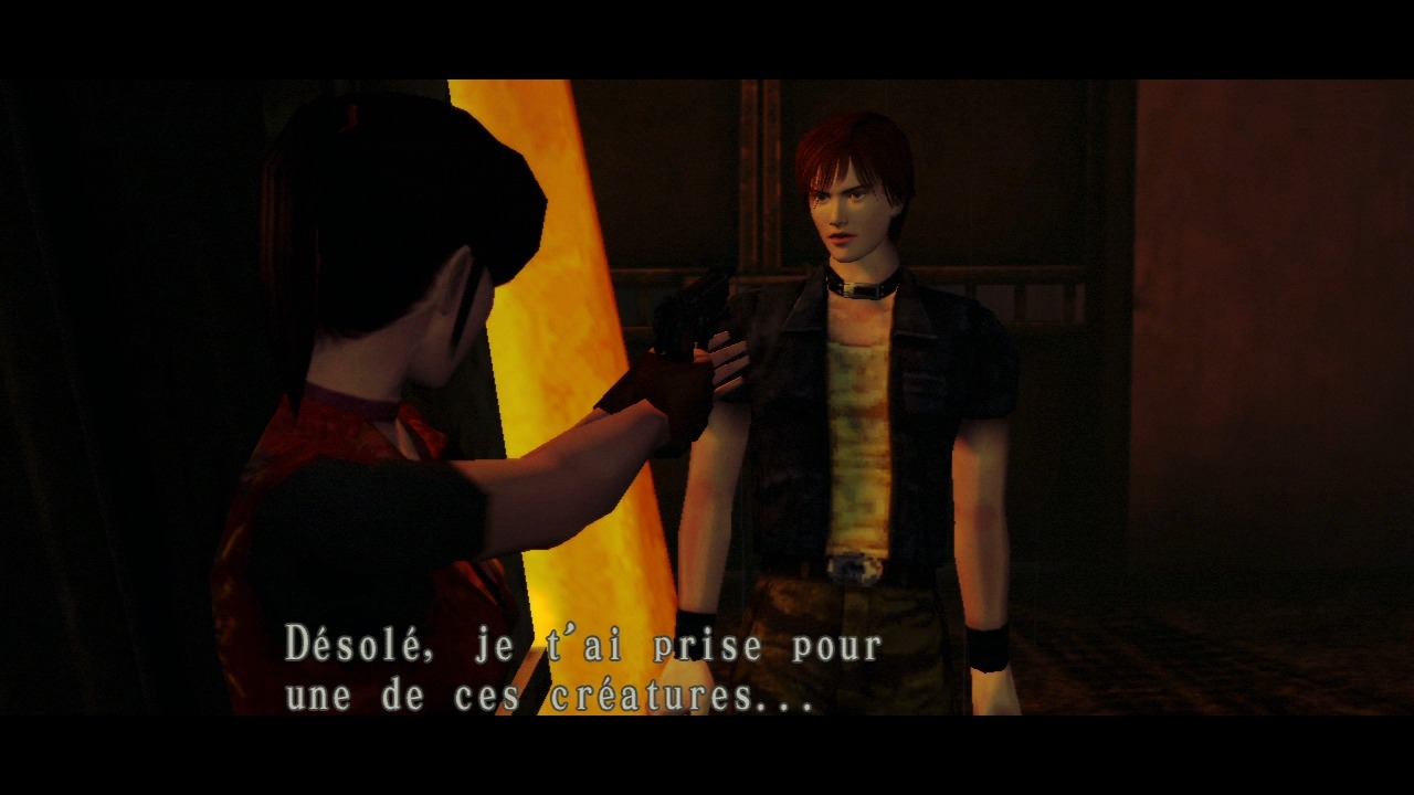 Développé en même temps que Resident Evil 3 : Nemesis, Code Veronica débarque d’abord sur Dreamcast en 2001. La saga nous remet dans la peau de Claire Redfield (Resident Evil 2), et il faut avouer qu’au départ, les changements sont mineurs. On retrouve la même interface, les mêmes personnages (Claire donc mais aussi son frère Chris), les mêmes commandes. Le système commence un peu à dater, depuis 1996, entre le menu pour sélectionner les objets toujours pas très beau et surtout les chargements à chaque ouverture de porte. Au niveau des rares ajouts, on pourra noter une caméra plus mobiles, la saga commençant à délaisser petit à petit les angles fixes. Si cet ajout permet aux décors d’être en 3D, il faut avouer que le moteur graphique n’a pas l’air d’ajouter grand-chose et que la 3D fait ressortir quelques défauts.