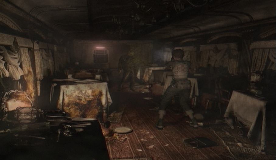 Plus rien n’arrête Capcom, qui entre deux opus, nous livre en plus des épisodes online sur PS2 (mais sans le mode online en Europe…) et des jeux de tirs. En 2003, après un remake du premier opus fort réussi, ils nous lancent une préquelle avec Resident Evil 0. On y retrouve cependant Rebecca Chambers, jeune recrue découverte dans le premier opus. La première partie, malgré des hasards de scénario assez énormes, se déroulant dans un train, est la plus prenante, même si elle nous montre déjà les défauts de l’oeuvre. Premier gros défaut, Resident Evil 0 manque clairement d’ambitions. Il ne fait que reprendre la formule des précédents, avec en plus, le moteur graphique du remake. Seul véritable ajout, ayant à la fois une qualité et un grand défaut: les coffres n’existent plus. Nous avons deux personnages, pouvant s’échanger des objets quand ils veulent. Bon point pour mieux gérer l’inventaire.