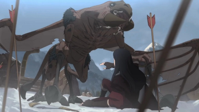 En effet, au niveau visuel, le studio Mir fait le taf. Après un début réellement gore, Kwang-il Han nous promène dans son univers à la beauté macabre mais envoutante. Un soin particulier est apporté aux décors et atmosphères, faisant de The Witcher l’une des meilleures réalisations de Dark Fantasy de ces dernières années, à l’esprit proche de celui que pouvaient développer ses consœurs des années 80 (Conan, Excalibur, Ladyhawke, La Chair et le Sang…) ou un Kentaro Miura et son Berserk. Magique, mystique, cruel, profond, funeste… mais aussi très palpable. Les chara-design des personnages, à mi-chemin entre influences japan-animées et comics, sont des plus adéquats pour faire ressentir cette impression de réalisme. Le monde conçu par Mir semble vivant, magnifié par de multiples détails favorisant une immersion fortement appréciable.