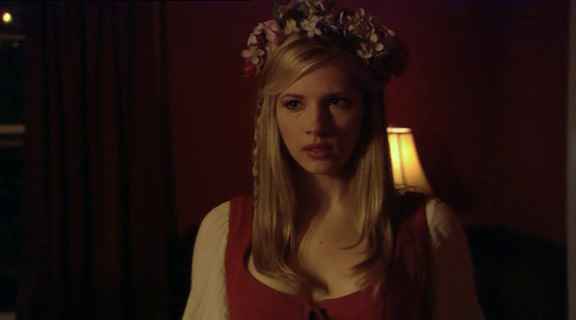 Ce qui ne convainc pas dans Satan’s Little Helper, c’est le reste. Techniquement déjà, malgré une mise en scène correcte, le film renvoi au temps des DTV shootés à la DV, pour un résultat digne des pires téléfilms. Le casting ensuite souffle le chaud et le froid. Si Katherin Winnick, pas encore starifiée après son rôle dans la série Viking, est convaincante, et que Amanda Plummer a l’air d’avoir fumé des tarpés entre chaque prises mais s’en sort tout de même bien, on en dira pas autant de Alexander Brickel dans le rôle de Doogey, peu aidé par l’écriture de son personnage, il est tout simplement insupportable et traîne un regard bovin tout au long du métrage et ressemble à ce que serait Droopy si c’était un chiot. En revanche, c’est un certain Joshua Annex derrière le masque de Satan qui remporte tout les suffrages, il donne au boogeyman une vrai personnalité via ses gestuelles et on sent qu’il s’est réellement investi dans le rôle, jusqu’à le rendre par moments inquiétant, voire flippant. Mais ce qui gâche Satan’s Little Helper contre toute attente, c’est son scénario. Bien qu’original et rempli de bonnes idées, pour arriver à faire incruster Satan dans les scènes sus-mentionnées, le script est blindé de facilités scénaristiques parfois aberrantes, et certains passages trahissent l’ordre du tournage des scènes, ce qui engendre de grosses incohérences dans le déroulement de l’intrigue et dans l’unité de temps, dans laquelle tous les endroits clés du film semblent être plus proche à pied qu’en voiture. Il y a aussi le pitch de base, ce gamin qui croit que son nouveau copain tue des gens pour de faux. Soit Jeff Lieberman a voulu dénoncer la violence vidéoludique et les enfants qui ne font pas la distinction entre la réalité et la fiction d’une manière peu subtile et moralisatrice, soit Doogey, qui voit un mec se faire poignarder, un autre se faire balancer par la fenêtre, ou encore une mamie qui meurt par pendaison et qui se fait tromper par le tueur lorsqu’il chance d’apparence plusieurs fois est juste très, mais alors très con. Tout 9 ans qu’il a, l’âge n’excuse pas tout, j’opte donc pour la seconde hypothèse.
