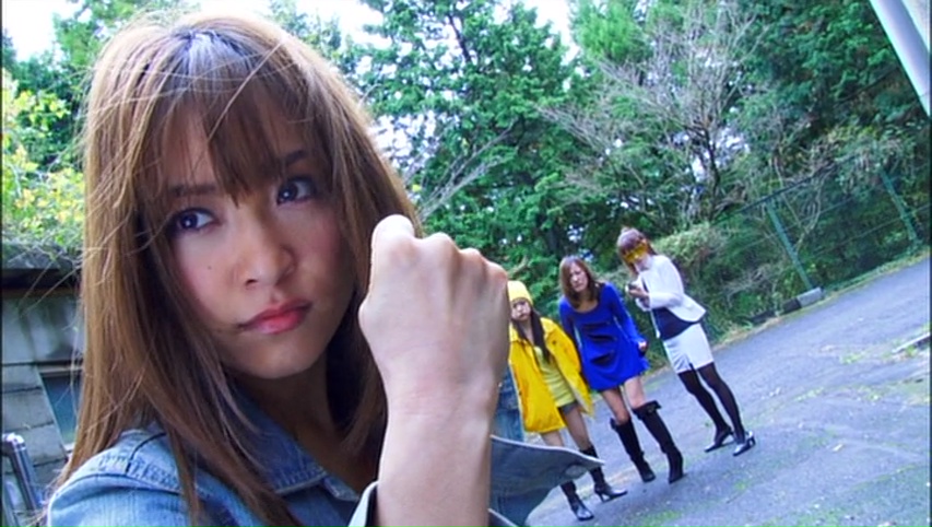 072 Sentai G-Ranger, aussi appelé G-Rangers 072 Squadron, il trainait sur mon disque dur depuis des années. À présent, je l’ai vu, et une seule question me vient à l’esprit, et devrait également vous venir à l’esprit ! Pourquoi ? Pourquoi j’ai eu envie de voir ça à l’époque où je me le suis procuré ? Ça n’a beau durer que 1h16, ce fut une torture. Le genre de film où l’on se dit que le réalisateur a tourné le film avec des potes pendant plusieurs weekends, en demandant l’autorisation à son école pour y tourner lorsque celle ci est fermée, et en offrant des pizzas aux actrices en échange de pouvoir filmer leurs poitrines nues. Un film où dés le premier plan… non troisième en fait, le premier plan étant du texte à l’écran et le second étant volontairement en contre jour, on sent que l’on a là un projet totalement amateur. Le souci, c’est que ça a beau sonner amateur, on a au départ une équipe professionnelle derrière. Derrière la caméra, on a Kawano Kôji. Un tâcheron qui a pourtant livré une ou deux bobines amusantes. Et même un bon film, car j’avais aimé le drame Love My Life. Mais au-delà de ce métrage, on avait les amusants Cruel Restaurant et Attack Girls Swim Team VS The Undead. Bon, et aussi les opus 3 et 4 de la saga Ero Kowai, qu’il a signé avec Tomomatsu, un autre tâcheron. Et devant la caméra, on a Mihiro. Faut-il présenter la dame ? Ancienne AV idol (Adult Video), elle s’est ensuite reconverti dans le cinéma gentiment sexy et horrifique, comme par exemple Yo Yo Girl Cop, Cruel Restaurant (tiens tiens) ou Samurai Princess, avant d’écrire en 2009 son autobiographie, qui fut portée à l’écran en 2010 : Nude. Un très bon film que je recommande d’ailleurs. Bon, et ici, Mihiro se retrouve projetée dans le Japon de l’année 2099, en ruine.