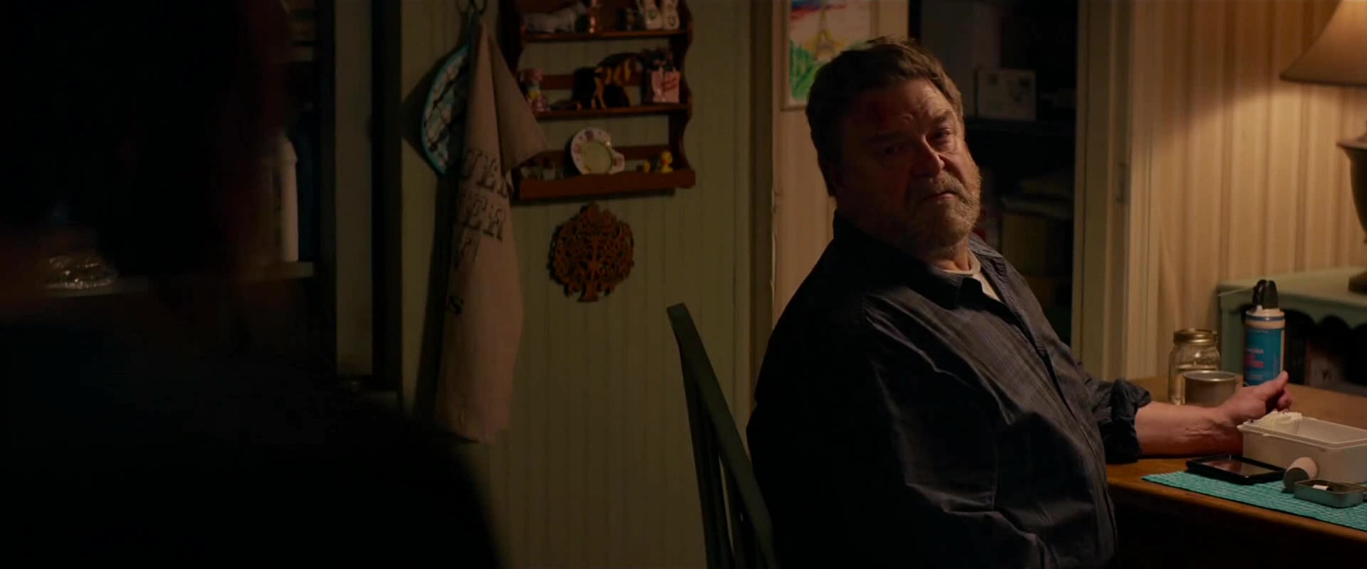 Mais les miracles existent, et 10 Cloverfield Lane est un huis clos très efficace, mené par deux grands acteurs. Mary Elizabeth Winstead dans la rôle de Michelle tient clairement le film sur ses épaules, et trouve enfin un rôle à la hauteur de son talent, et surtout, un film intéressant et suffisamment commercial pour se faire remarquer (car Faults c’était excellent mais ça passe inaperçu, et les films genre The Thing, c’est mauvais). Face à elle, on retrouve John Goodman tout simplement excellent, nous faisant douter en permanence de ces intentions, avec un jeu subtil, tour à tour pouvant être votre meilleur ami avant de vous faire flipper par une phrase à multiples interprétations ou un regard qui peut vouloir dire beaucoup de choses. L’horreur du premier opus, avec ce monstre géant qui attaquait New York, est donc remplacée par une horreur qui a un visage beaucoup plus humain, nous faisant clairement oublier le produit que l’on était censé voir au départ. Et ça, c’était un pari risqué, et encore plus casse gueule que de vouloir faire un huis clos. 10 Cloverfield Lane débute comme un banal film, avant que l’élément déclencheur n’amène le huis clos, puis nous offre une dernière partie, certes semblant un peu plus artificielle, mais venant rattacher le film à son prédécesseur.